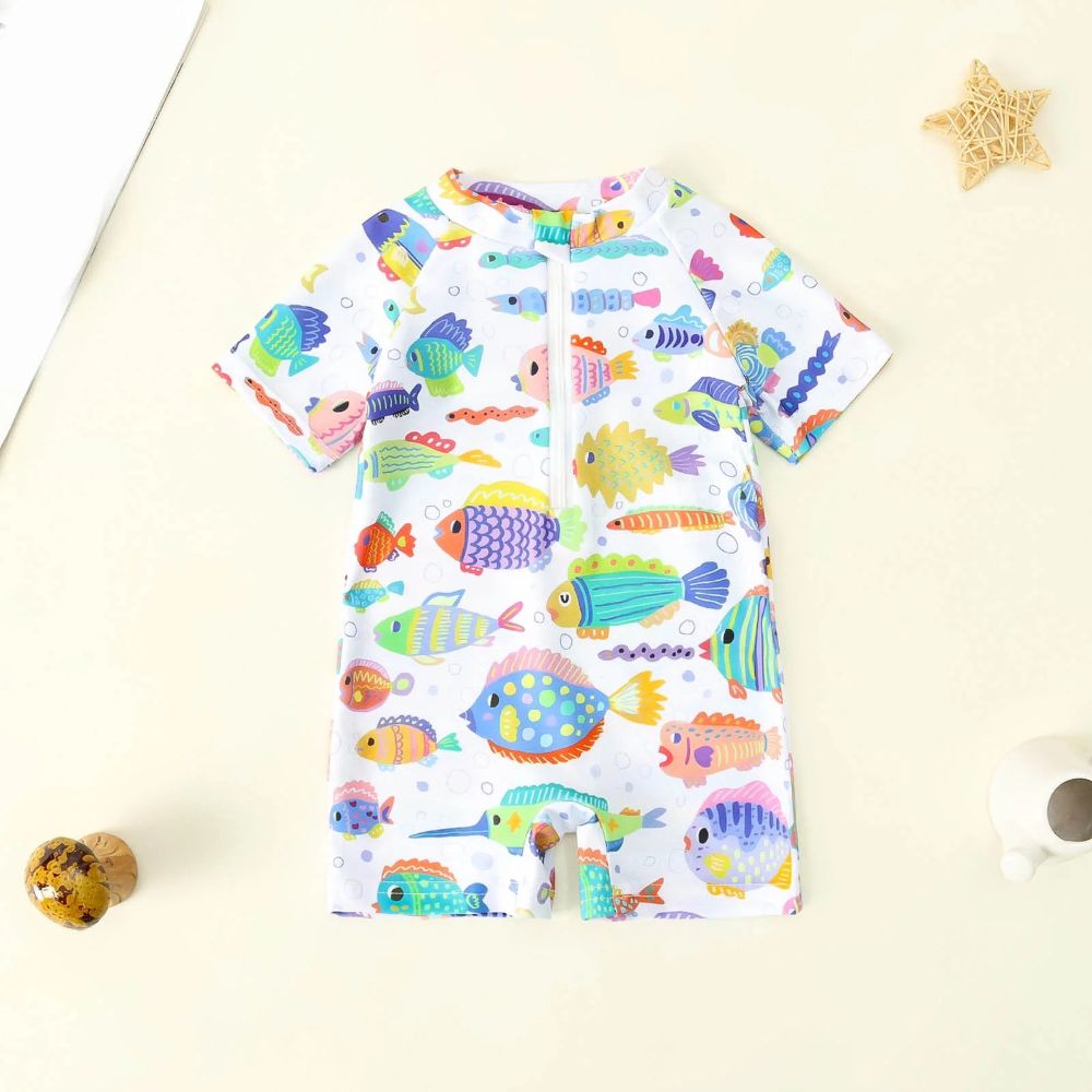 Kids Multicolour Fish Print β Short Sleeve One-Piece Swim Suit