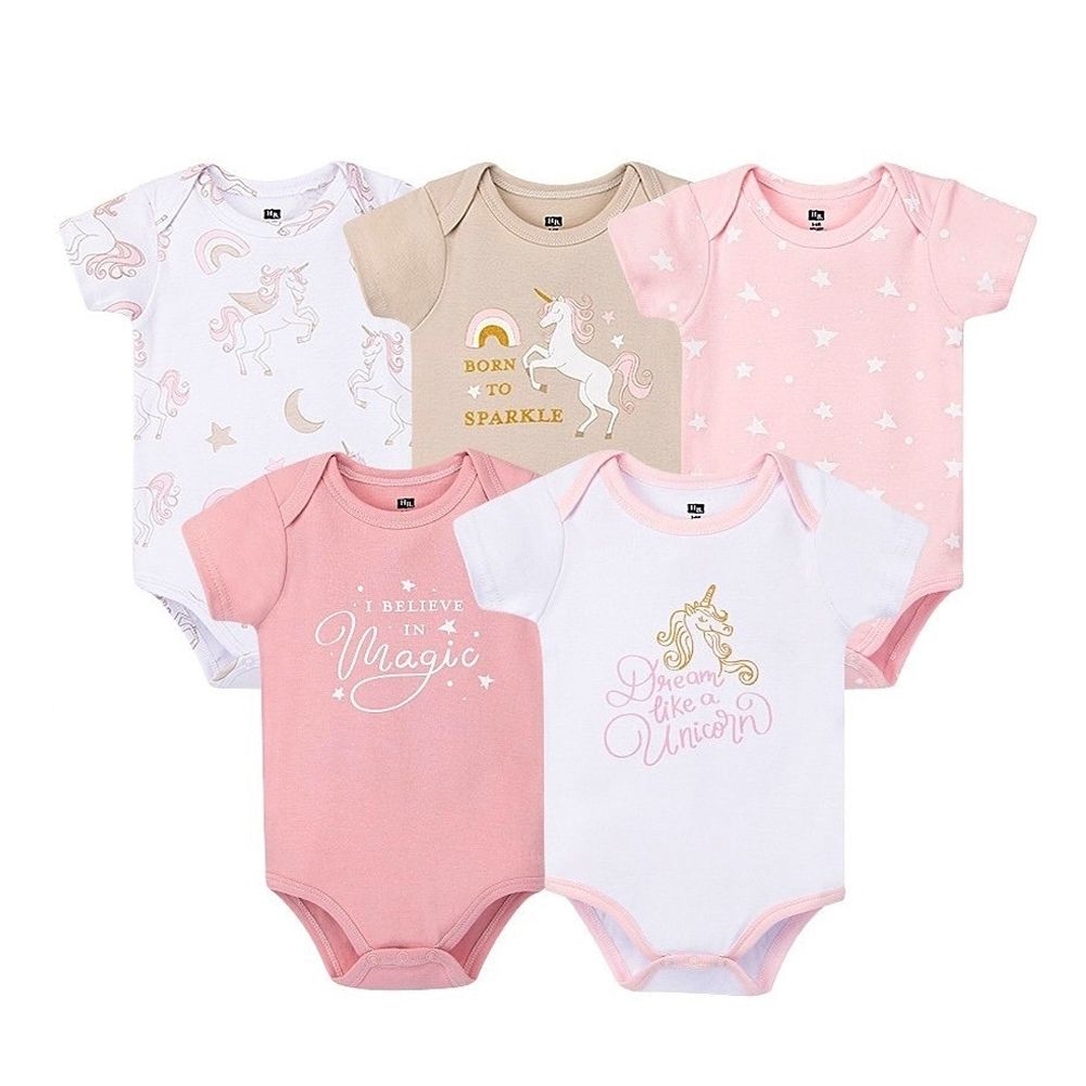 Baby Cotton Bodysuits – 5-Pack "Unicorn" Theme