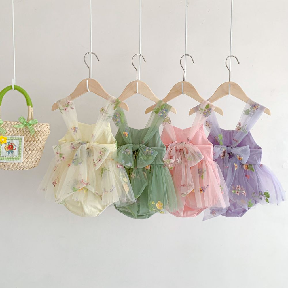 Make your little one's moments unforgettable with our adorable collection of floral embroidered tulle romper...