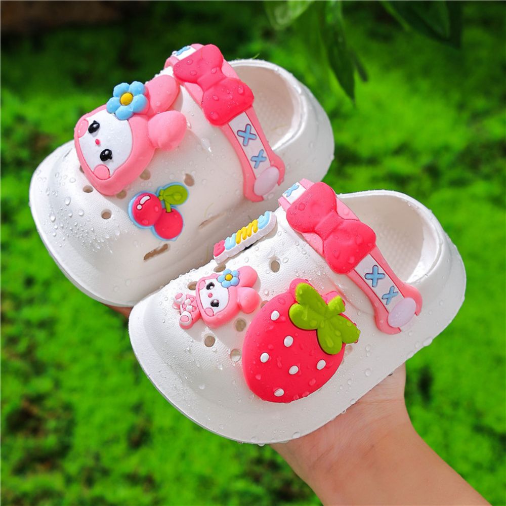 Children's Cartoon Embellished Slip-On Clogs – White with Colorful 3D Decorations Description:Step into comfort and...