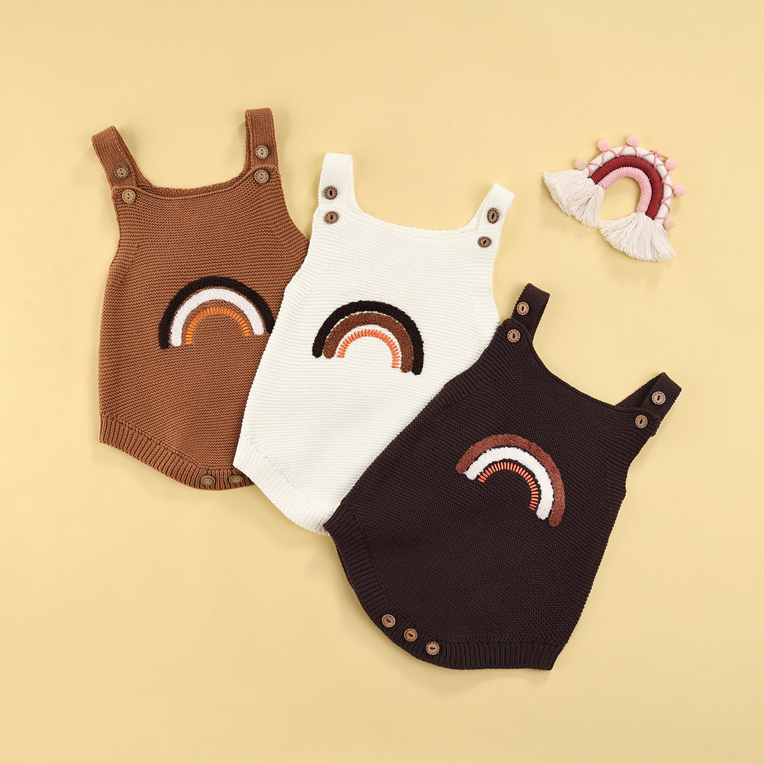This adorable baby girl's sleeveless rainbow sweater onesie is a perfect addition to your little...