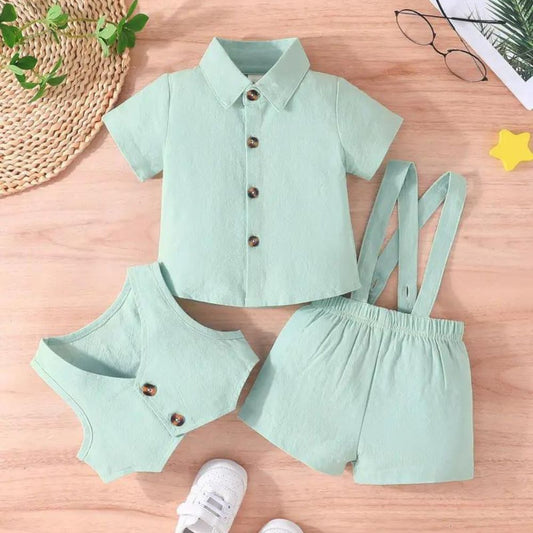 3 Piece Muslin Cotton With Suspender Shorts And Waist Coat Summer Set For Kids
