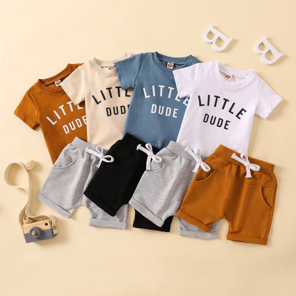 Introducing our Breathable Soft Summer Little Dude Tees and Shorts Sets, perfect for your little...