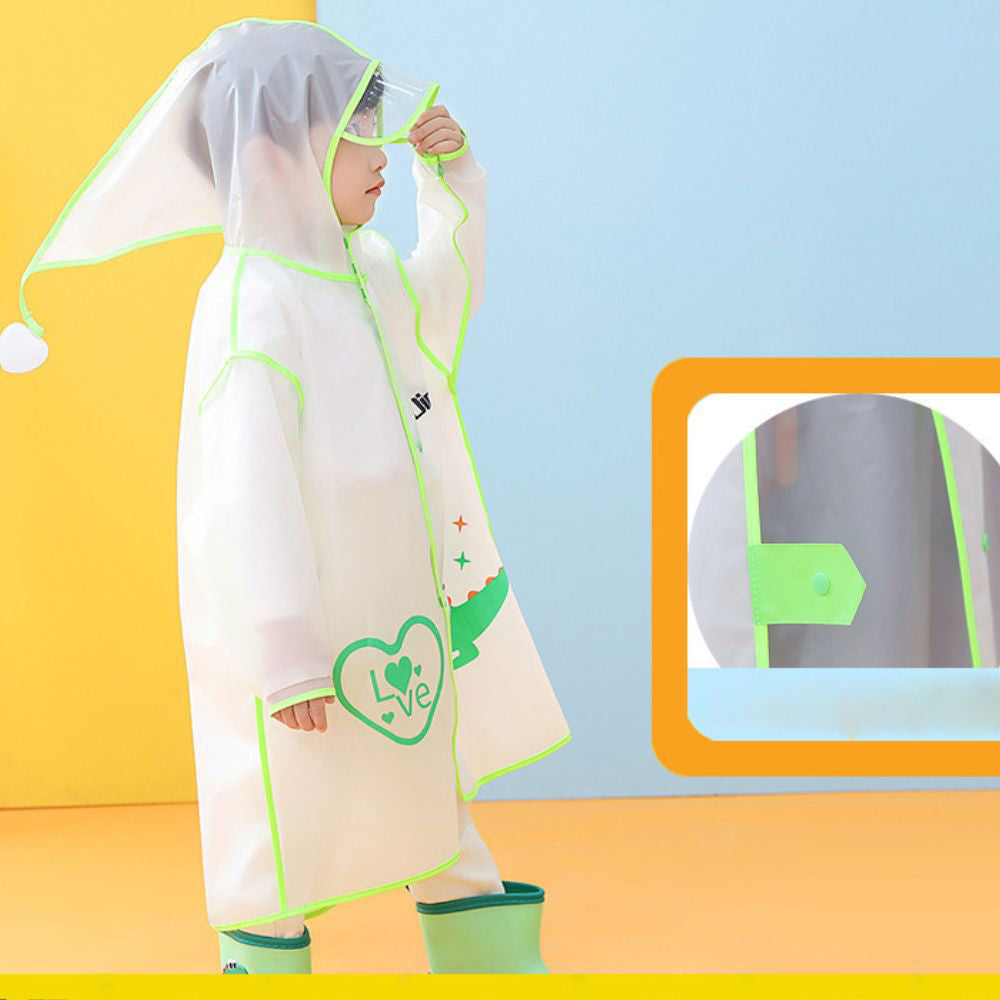 Dinosaur Print Neon Transparent Raincoat For Kids