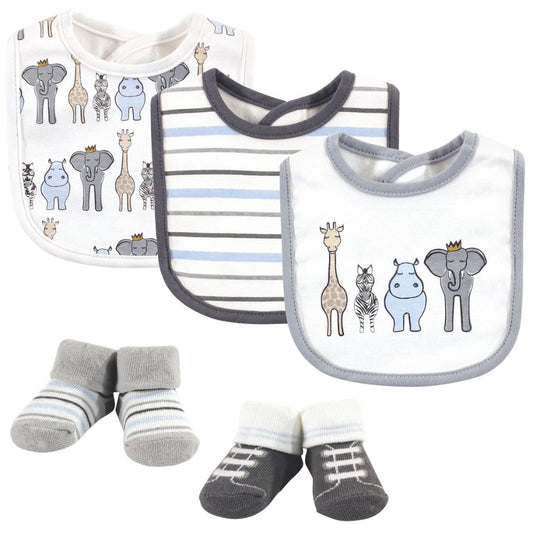 Animal & Stripe Print Bib and Socks Set