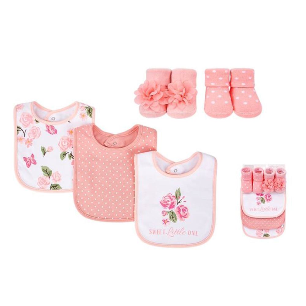 Newborn Girl Bib and Sock Gift Set