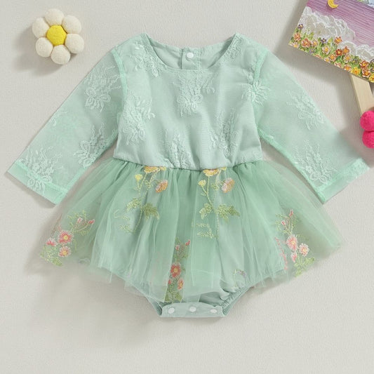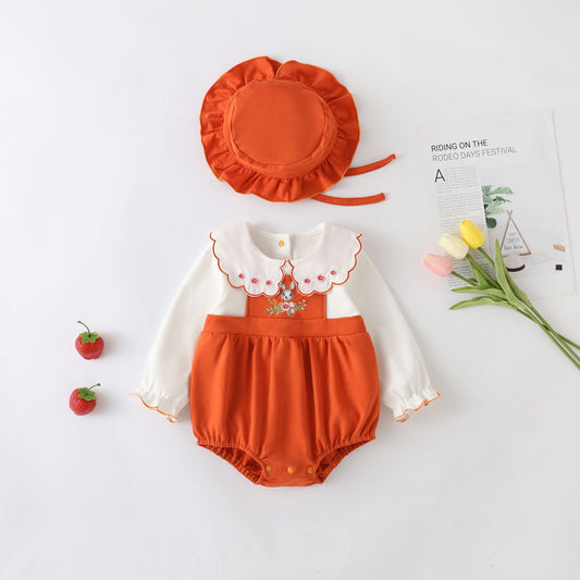 Adorn your little one in blooming beauty with our Baby Girl Floral Embroidered 2-Piece Romper...