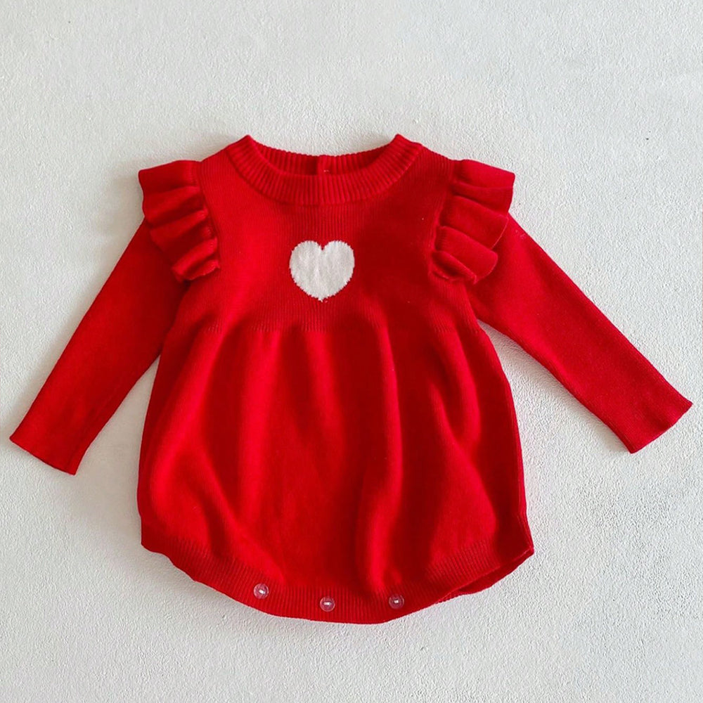 Dress your adorable little one in this charming Baby Girls Loving Heart Fly Sleeve Romper....