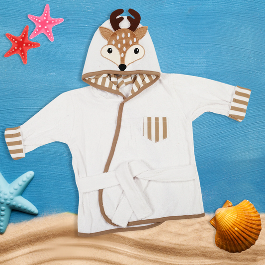 Cute Deer Hooded Soft Cotton Bathrobes - 0 to 9 months