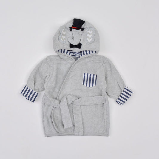 Gentle Elephant Full Sleeves Hooded Soft Cotton Knit Bathrobes - 0 to 9 months