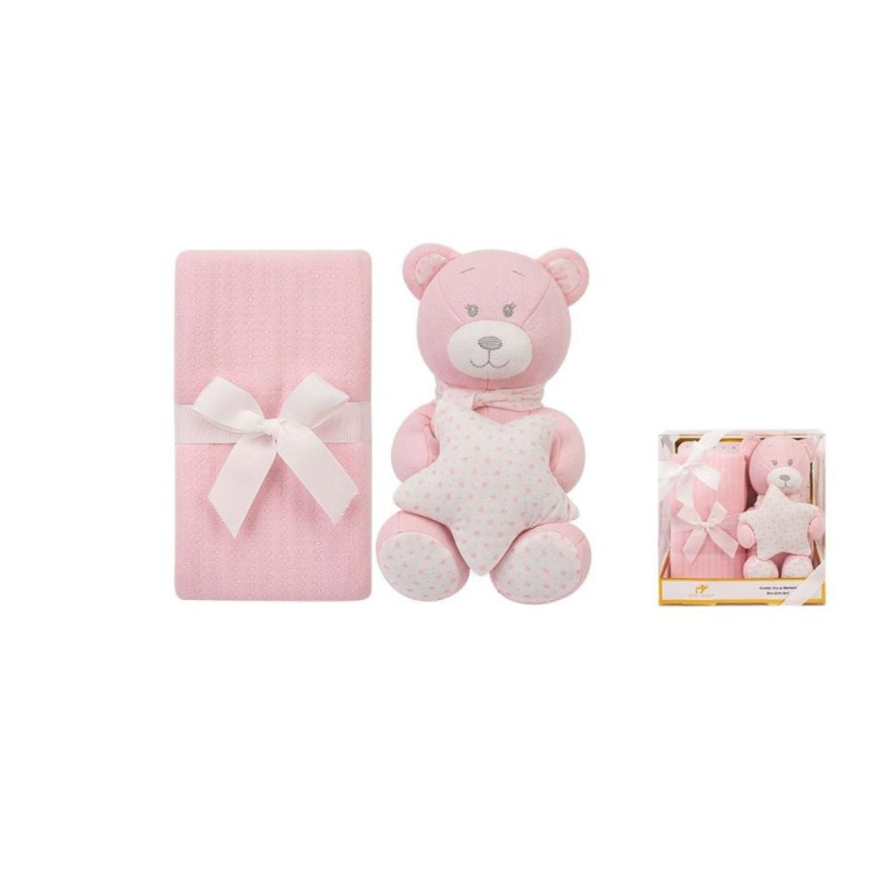 Teddy Bear Plush with Star Pillow & Matching Blanket