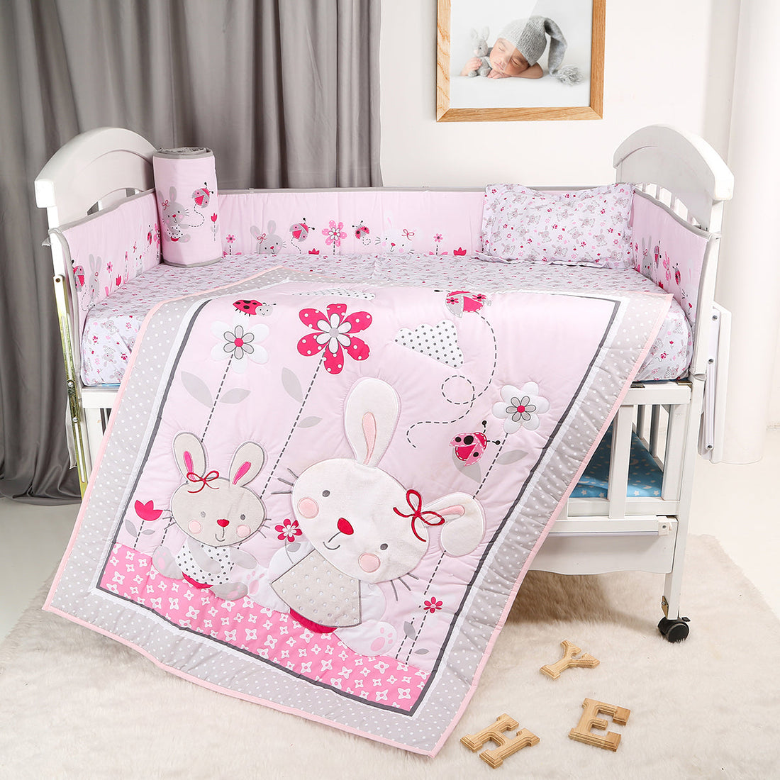 Cotton Crib Bedding Set/ Cot Set - Pack of 7