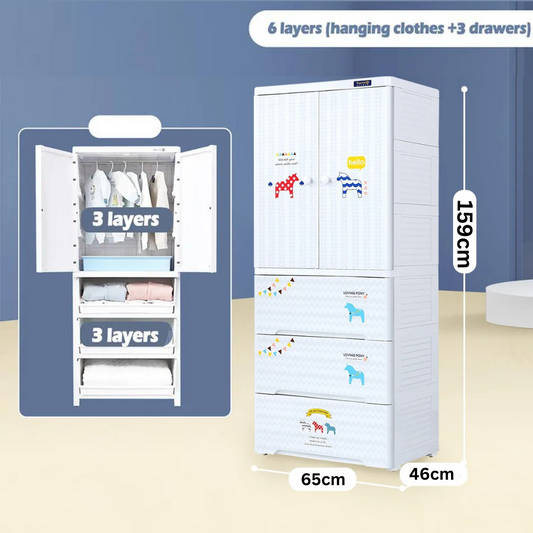 5 Layer Thickened Fibre Plastic Baby Almirah With Cupboard, Storage Drawers