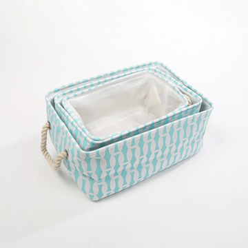 Foldable Storage Basket with Strong Cotton Rope Handle - Pack of 3