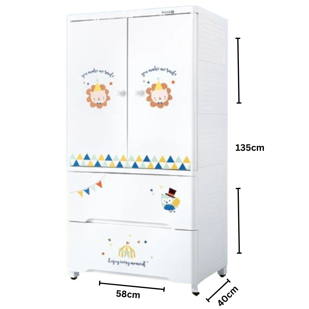 This plastic fibre Almirah with chest of drawers comes with wheels and is thick, hard, and very strong and sturdy. It has a cute design that is either screen-printed or laser printed, making it easy to clean.