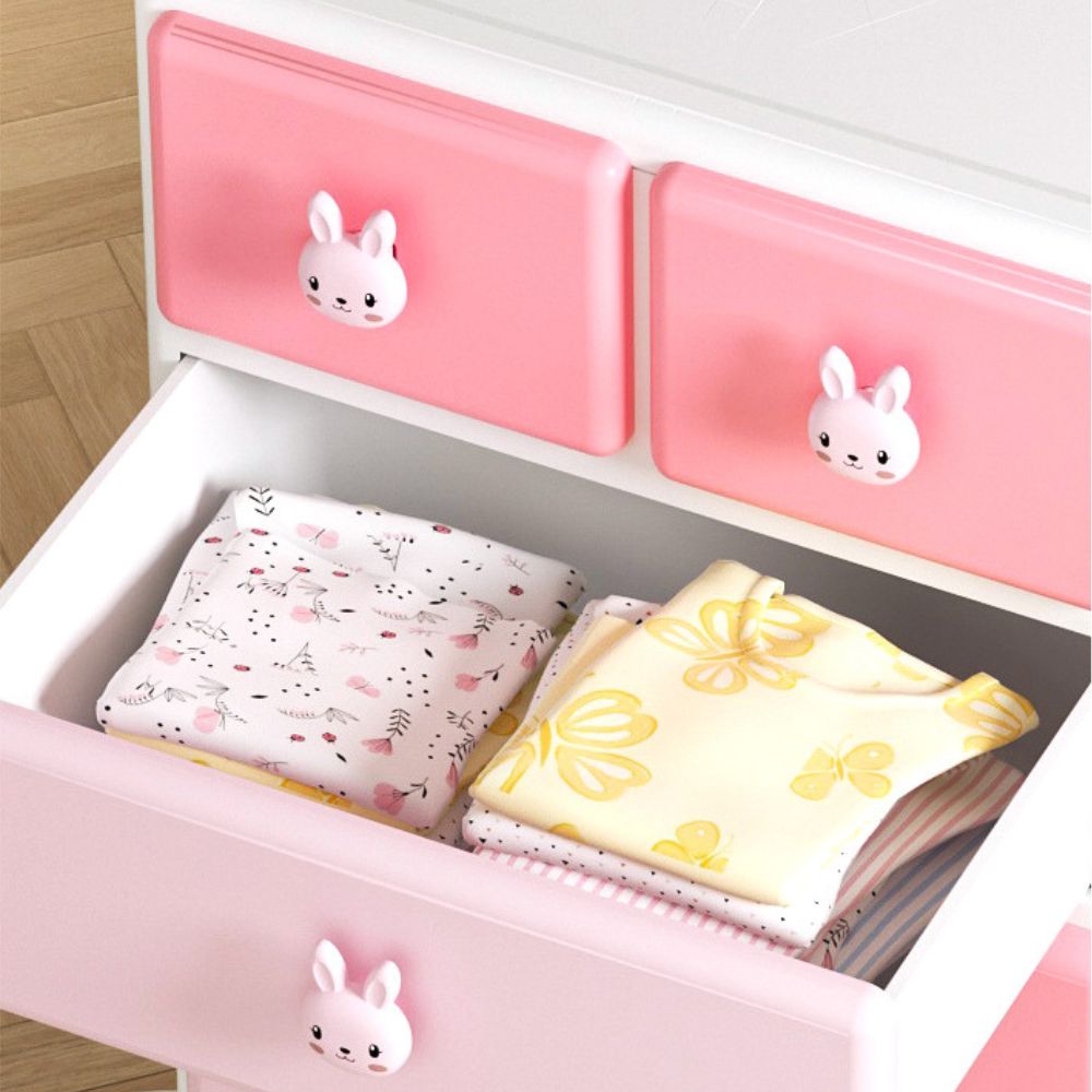 This plastic chest of drawers is thick, hard, and very strong and sturdy. It has cute designs printed on it and is easy to clean. It will arrive in a locked-down condition but takes only 30 minutes to assemble. This storage cabinet also has a unique shape making it perfect for storing clothes, books, jars, small containers, and other household items while saving space.