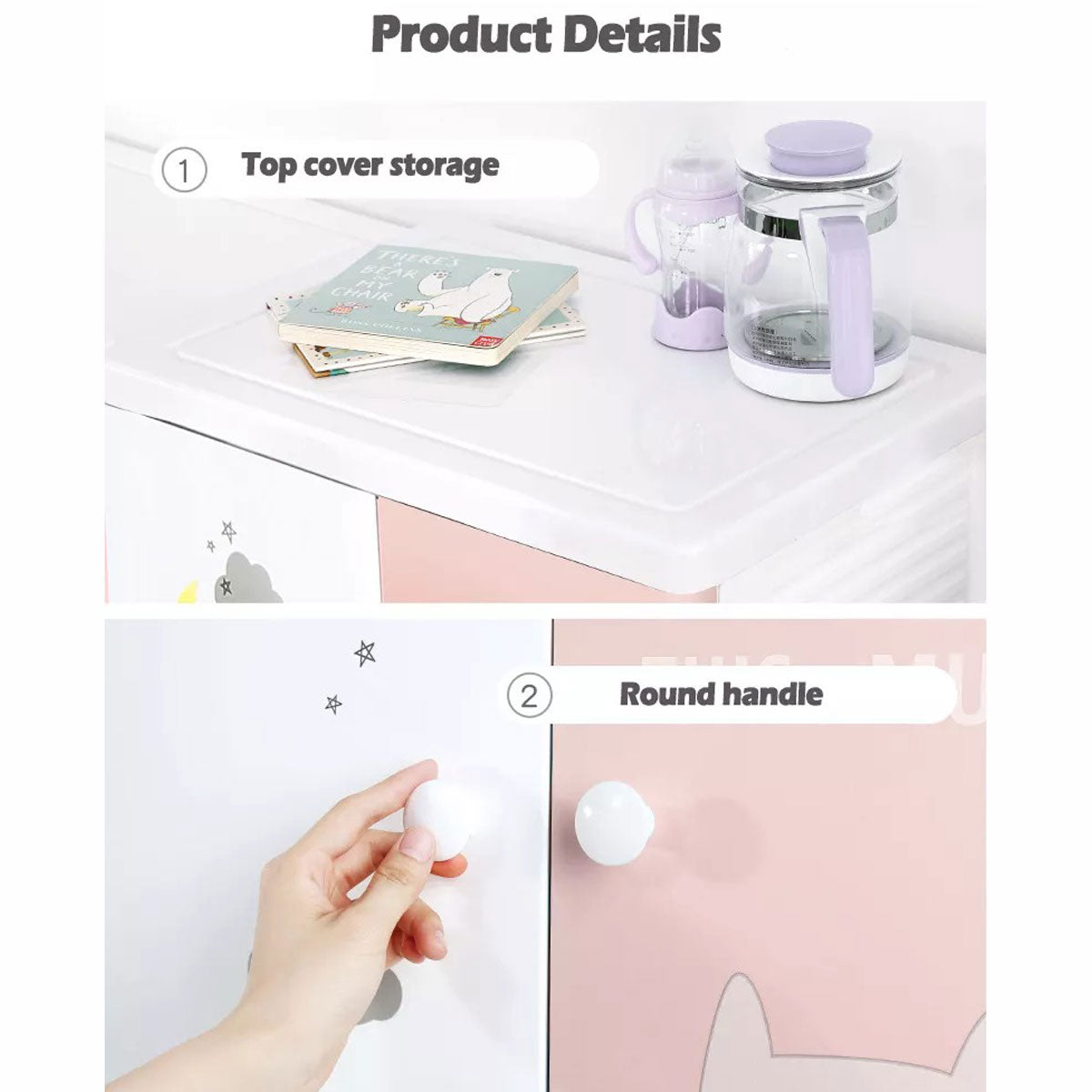 This sturdy and strong plastic chest of drawers with wheels have a cute design that is either screen or laser printed.