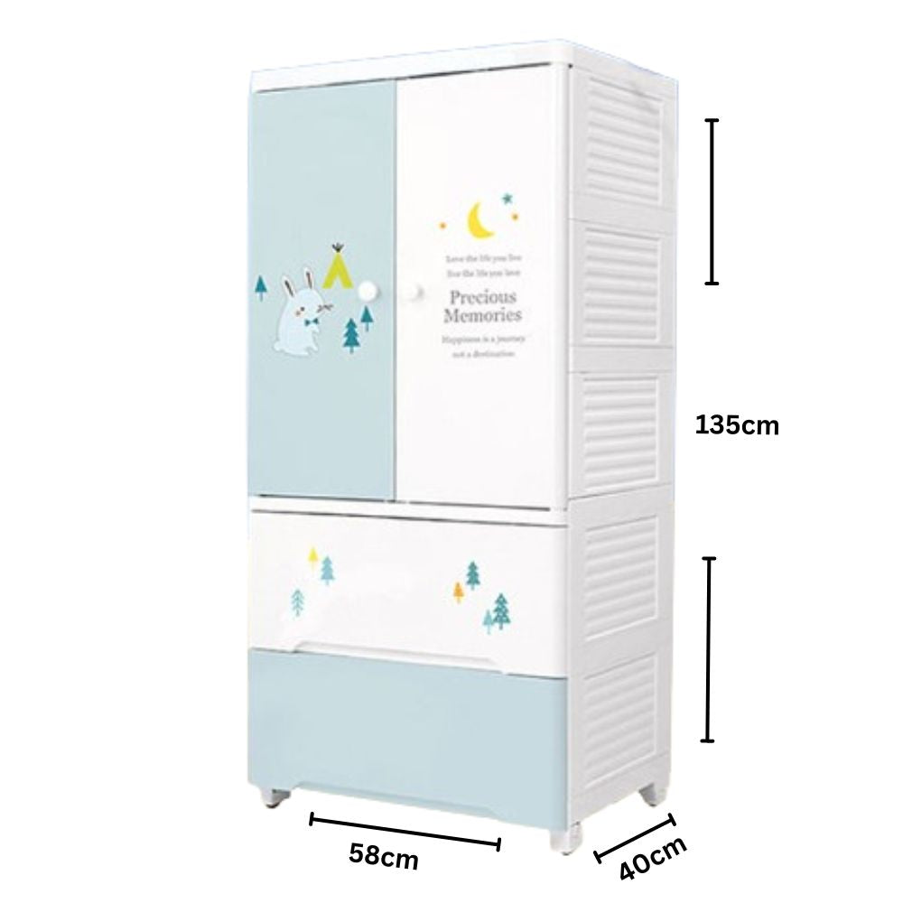 This Plastic Almirah with chest of drawers is made of thick, hard, and very strong and sturdy fiber plastic. It has a cute design printed on it, is easy to clean.