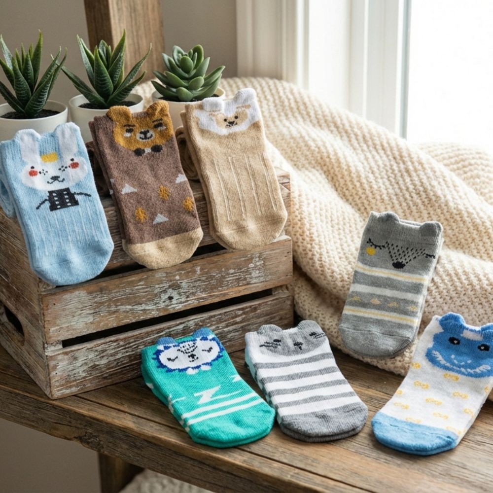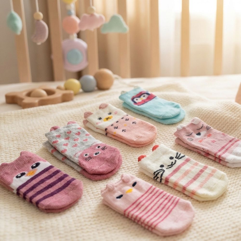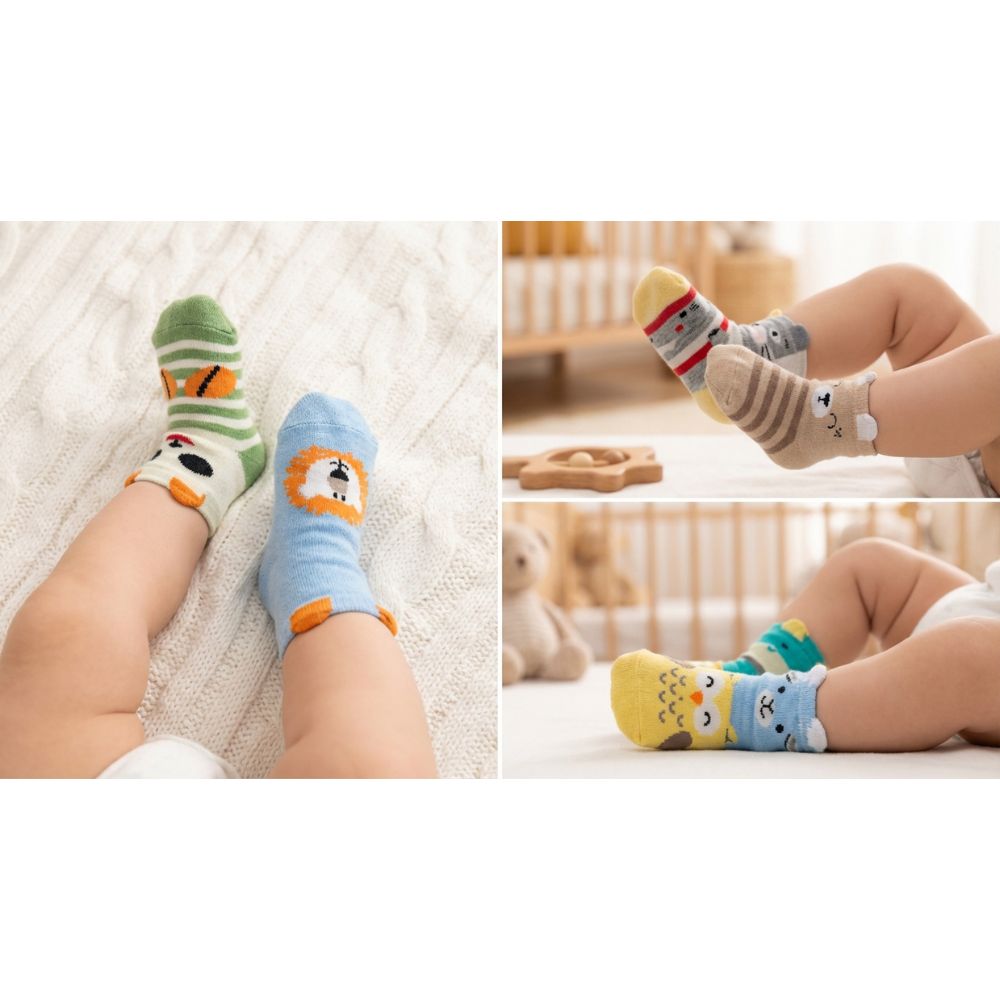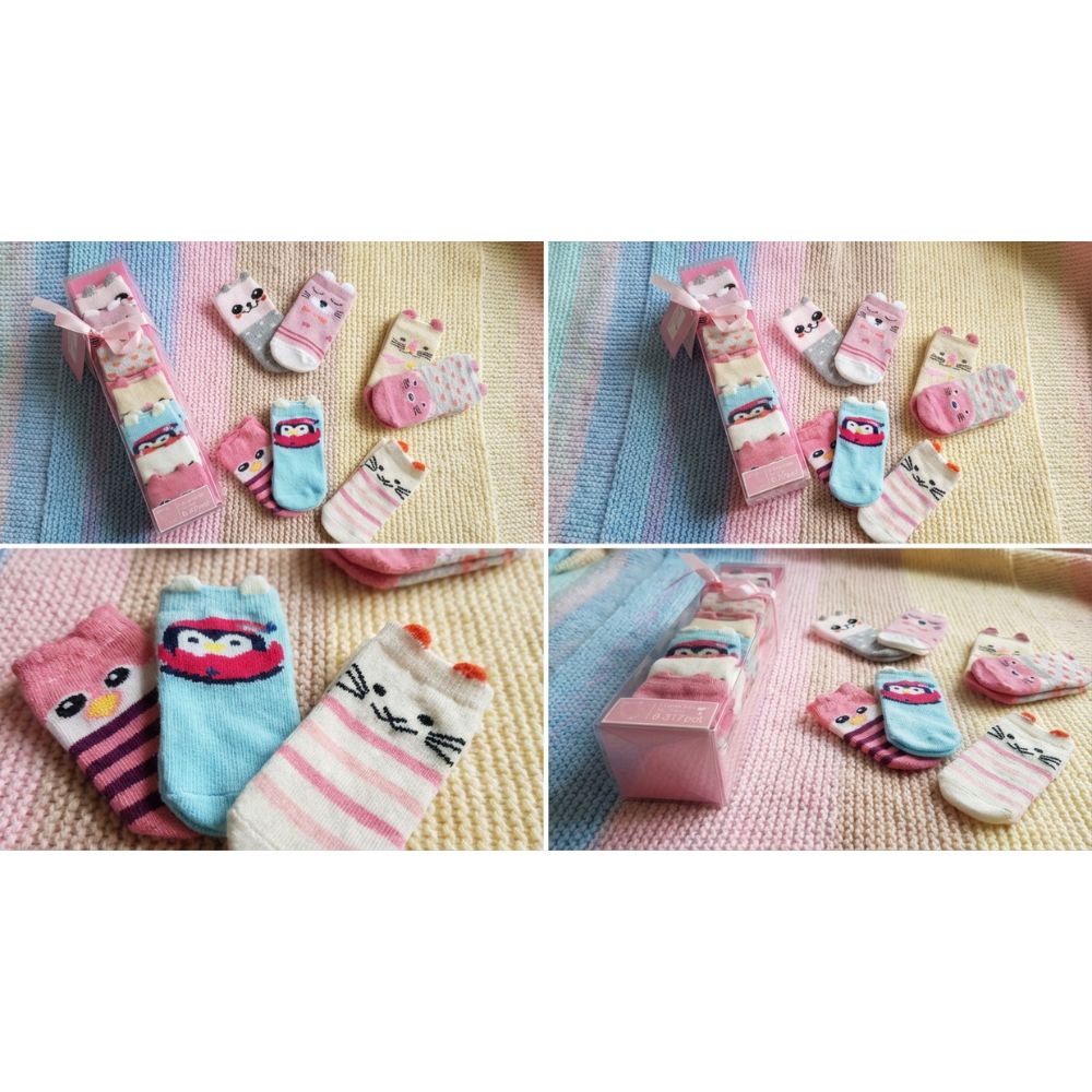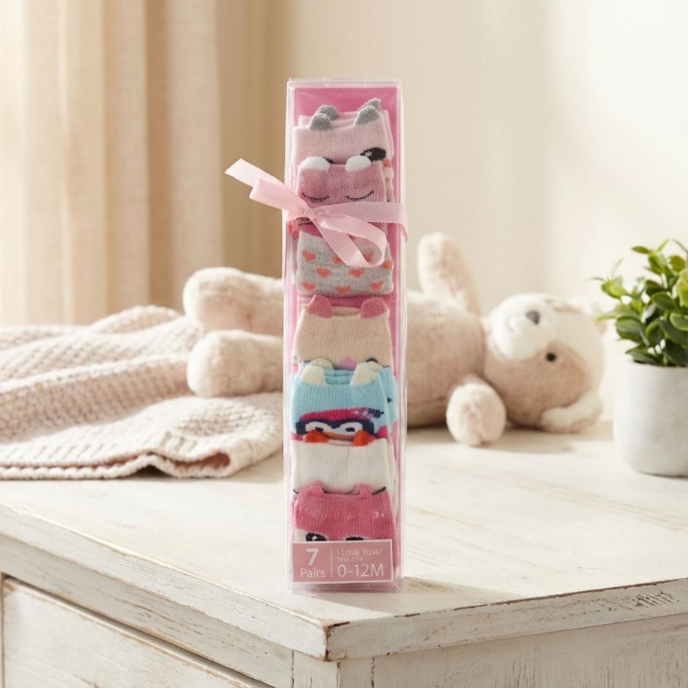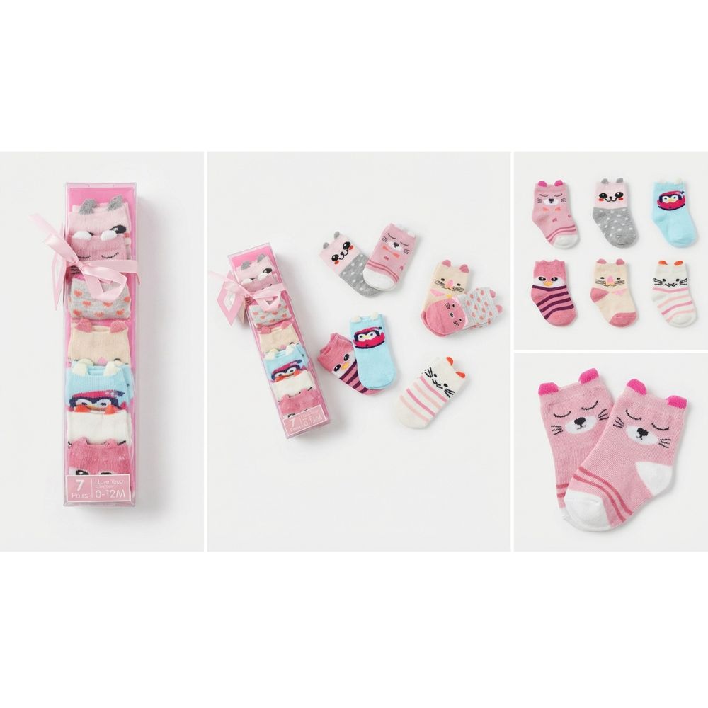 Make every day extra special with our charming 7 Days Socks Gift Set, perfect for your little one aged 0-12 months. This delightful set features seven uniquely designed pairs of baby socks, each showcasing an animal face in soft, soothing colours. Whether for daily wear or a thoughtful gift, these socks combine comfort, style, and practicality.