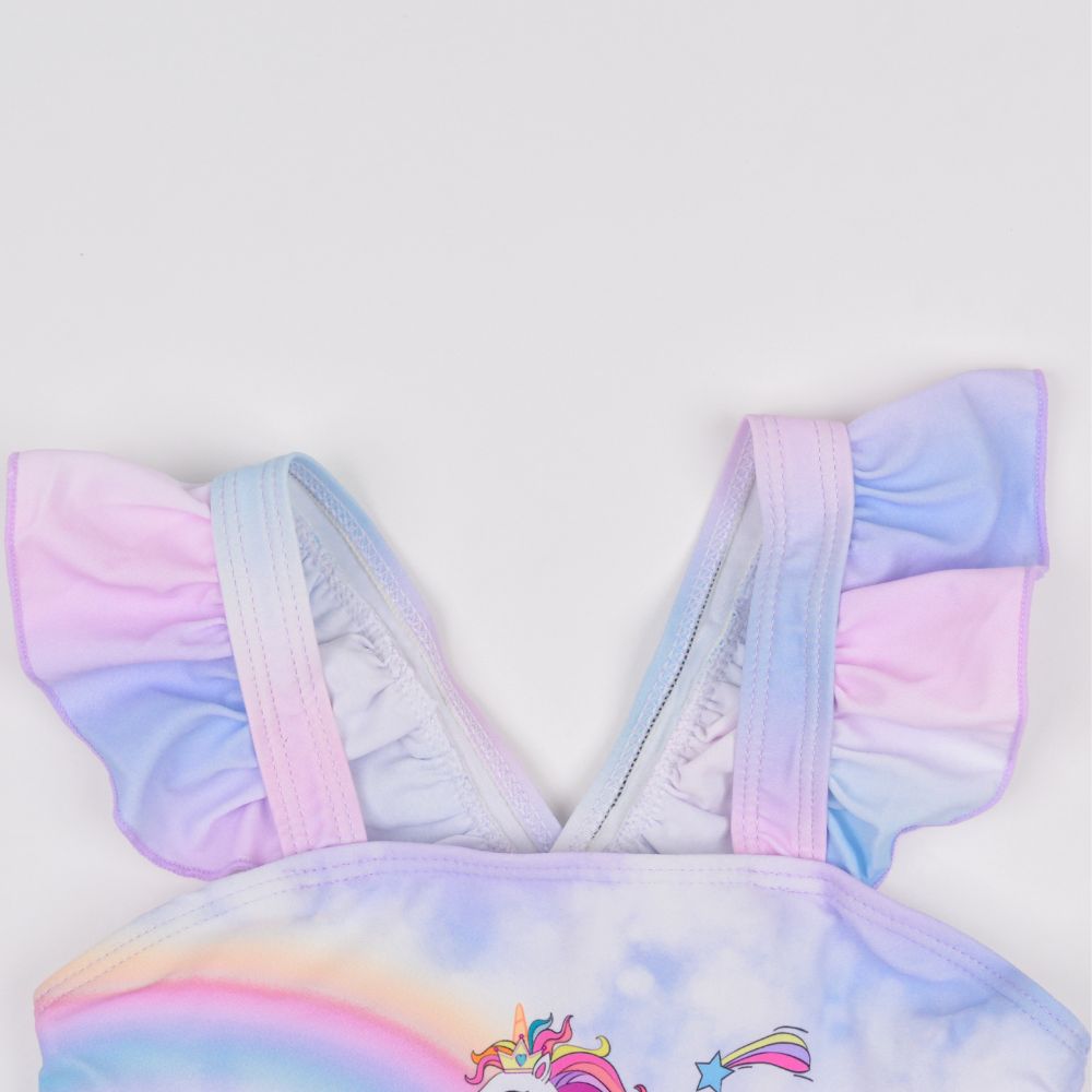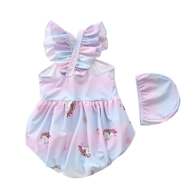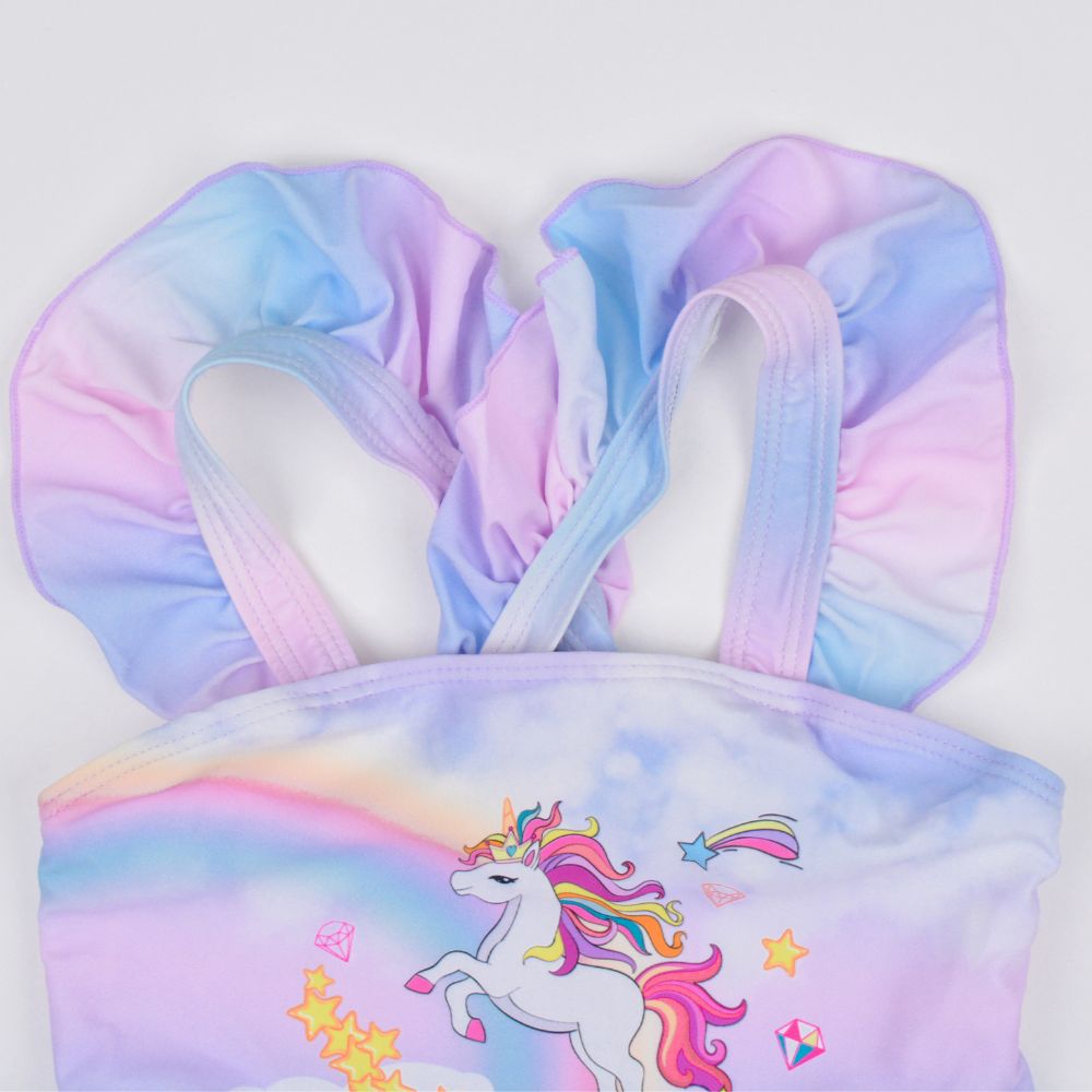 Crafted from soft, high-quality material, this swimsuit ensures both comfort and durability, allowing your baby girl to move freely while she enjoys the water. The vibrant colors and adorable Unicorn design make it a standout piece for any water-loving princess. Let her dive into a world of imagination and fun with this adorable unicorn-inspired swimsuit!