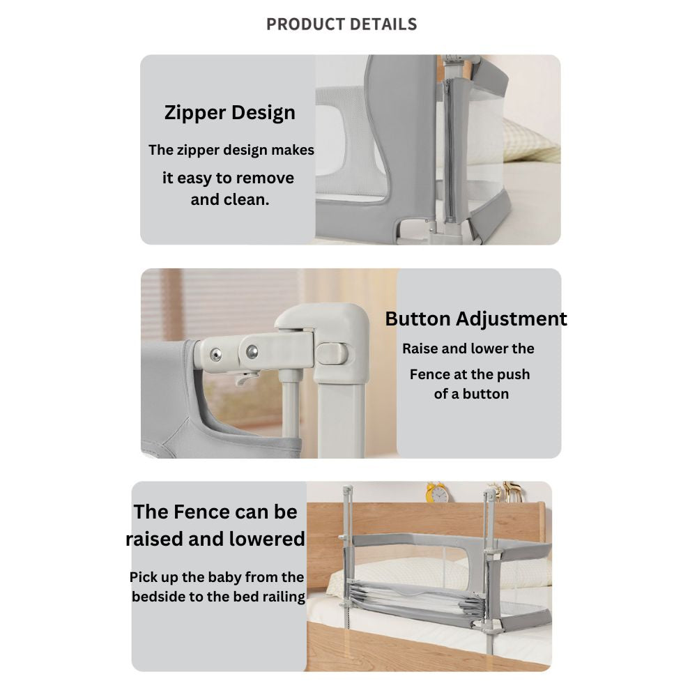 Designed with your baby's safety and your convenience in mind, the Bedside Sleeper offers a secure, adjustable, and breathable environment for restful sleep and easy caregiving.