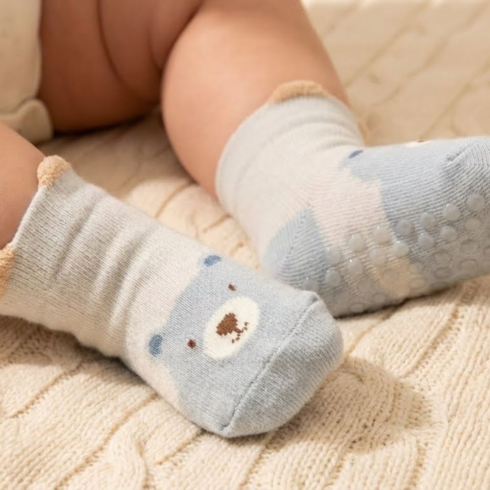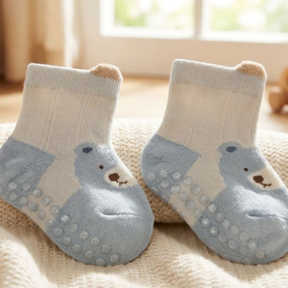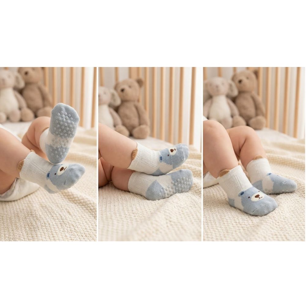 Keep your little one comfortable and safe with these adorable ankle socks featuring a charming bear face and playful ear details. Designed for active babies and toddlers, these socks are ideal for both indoor use on slippery floors and outdoor adventure.