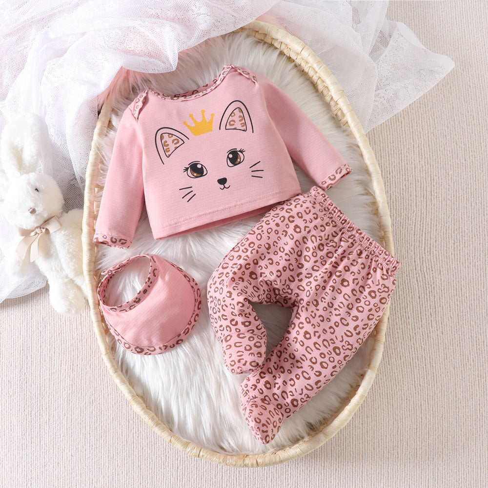 Introduce your newborn to comfort and cuteness with our Casual Lounge Wear Pajama Set, featuring an adorable cat face print and full sleeves tees!