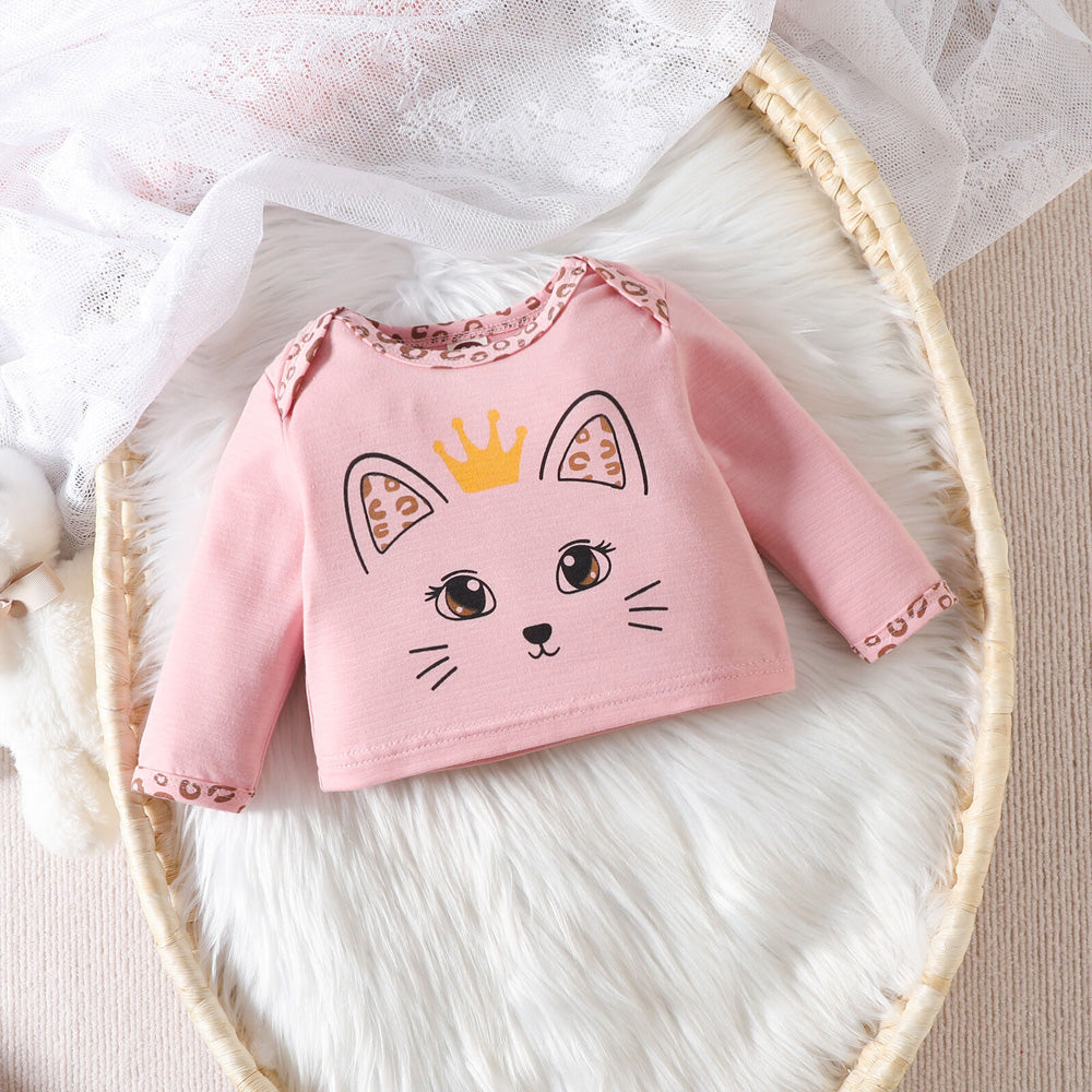 The charming cat face print adds an extra touch of sweetness to the ensemble. With full sleeves for added warmth and an irresistibly cute design, this pajama set is perfect for both lounging and peaceful slumbers, promising snug comfort and delightful style for your newborn baby.