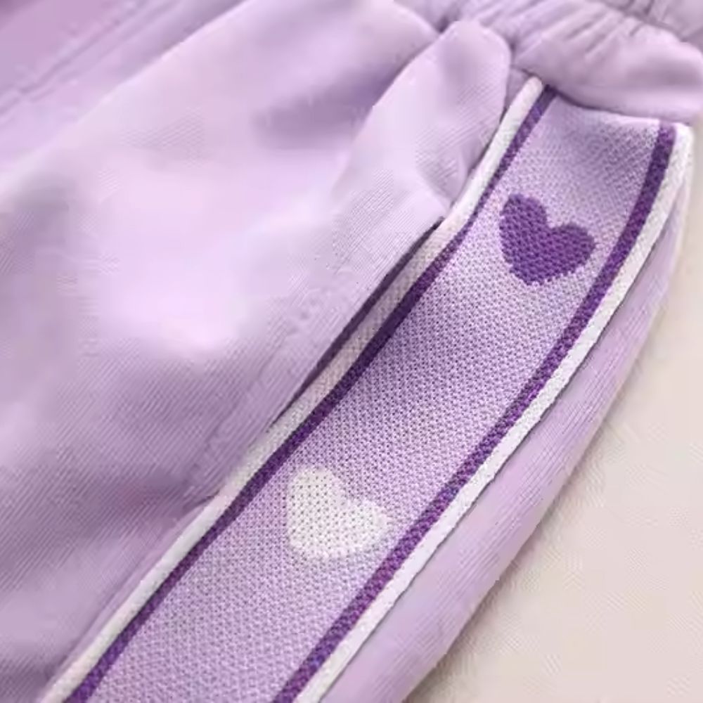 Elevate your little one's style with our Sporty Track Set for Little Girls from our Baby Streetwear Collection’s Girls Co-ord Jacket and Jumper Set adorned with a charming Heart Applique Jacket and matching Joggers. This trendy clothing set is perfect for autumn and winter, offering both warmth and fashion-forward flair.