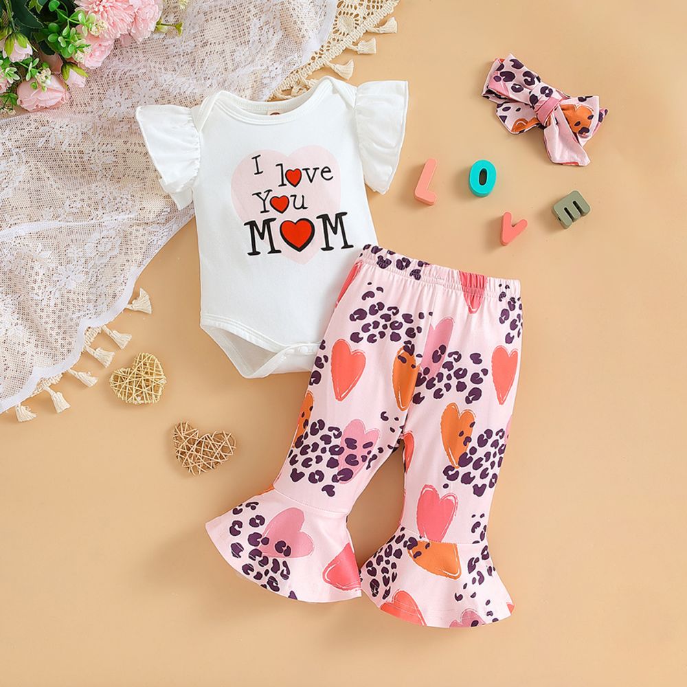 Dress your little princess in style with our Fashion Baby Girl Onesie featuring a wilt loose fitting heart print flared pant and matching headband. Soft, comfortable, and irresistibly cute, this outfit is perfect for parties and special occasions. Discover trending designs that blend comfort with fashion-forward flair.