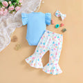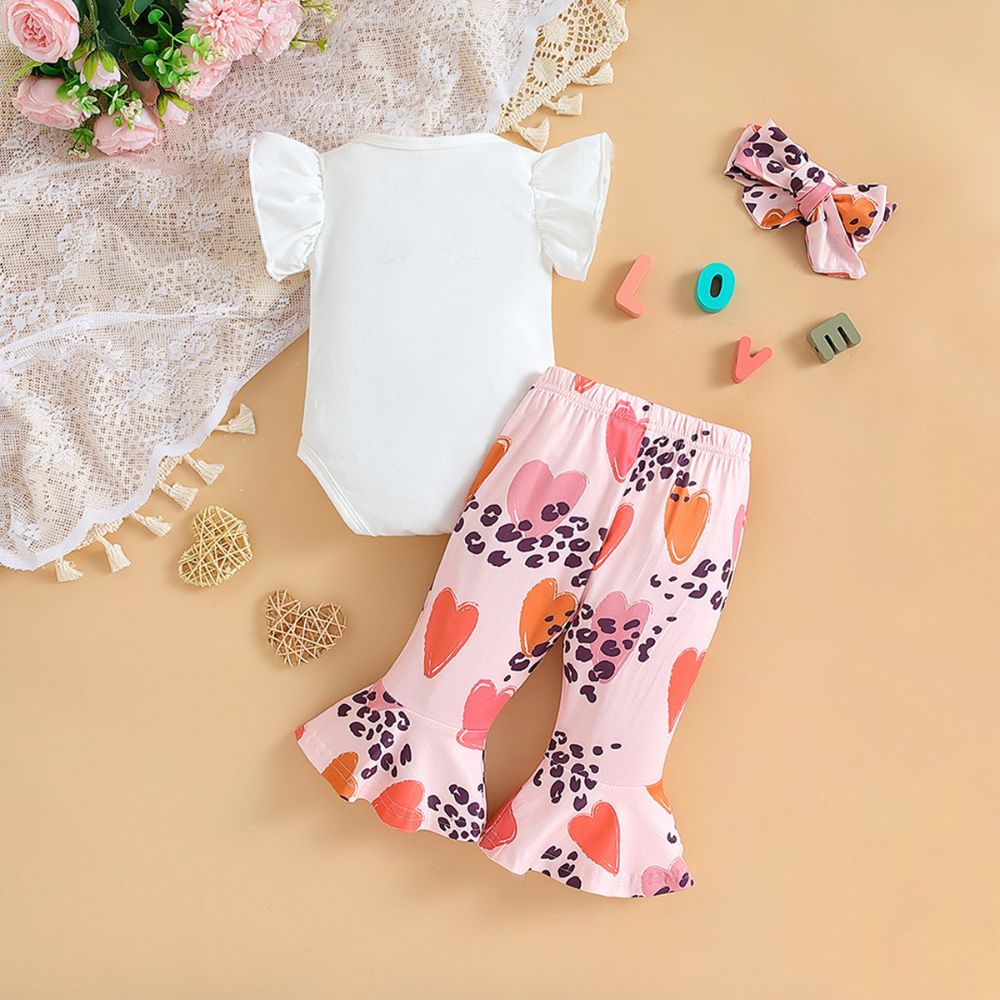 Fashion Baby Girl Onesie And Loose Fitting Heart Print Flared Pant With Headband