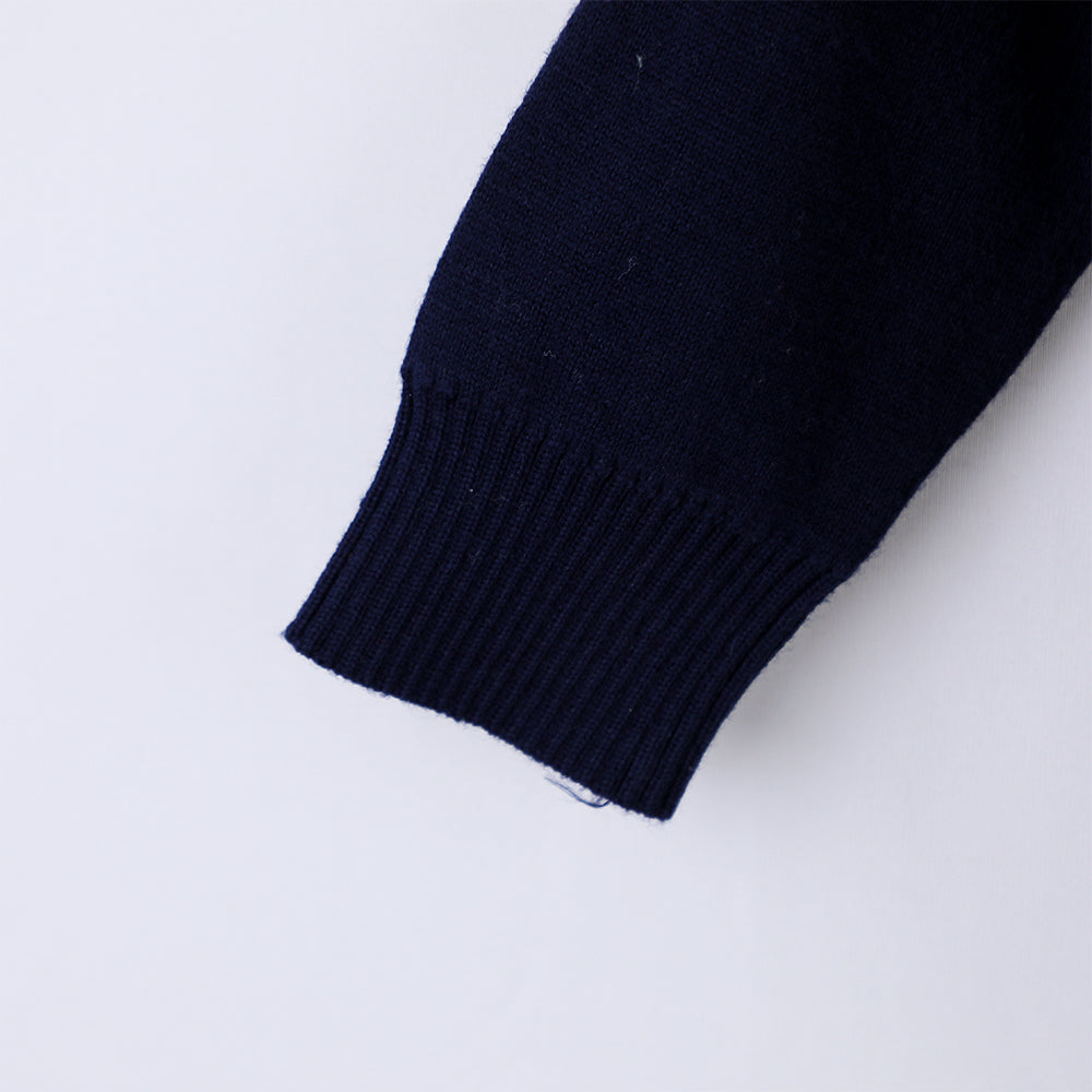 This full-sleeve Sweater for boys is made of super soft and comfortable fabric to keep your little one warm and cozy during winter. It has a round neck and ribbed hemline, making it perfect for both casual and formal outings.