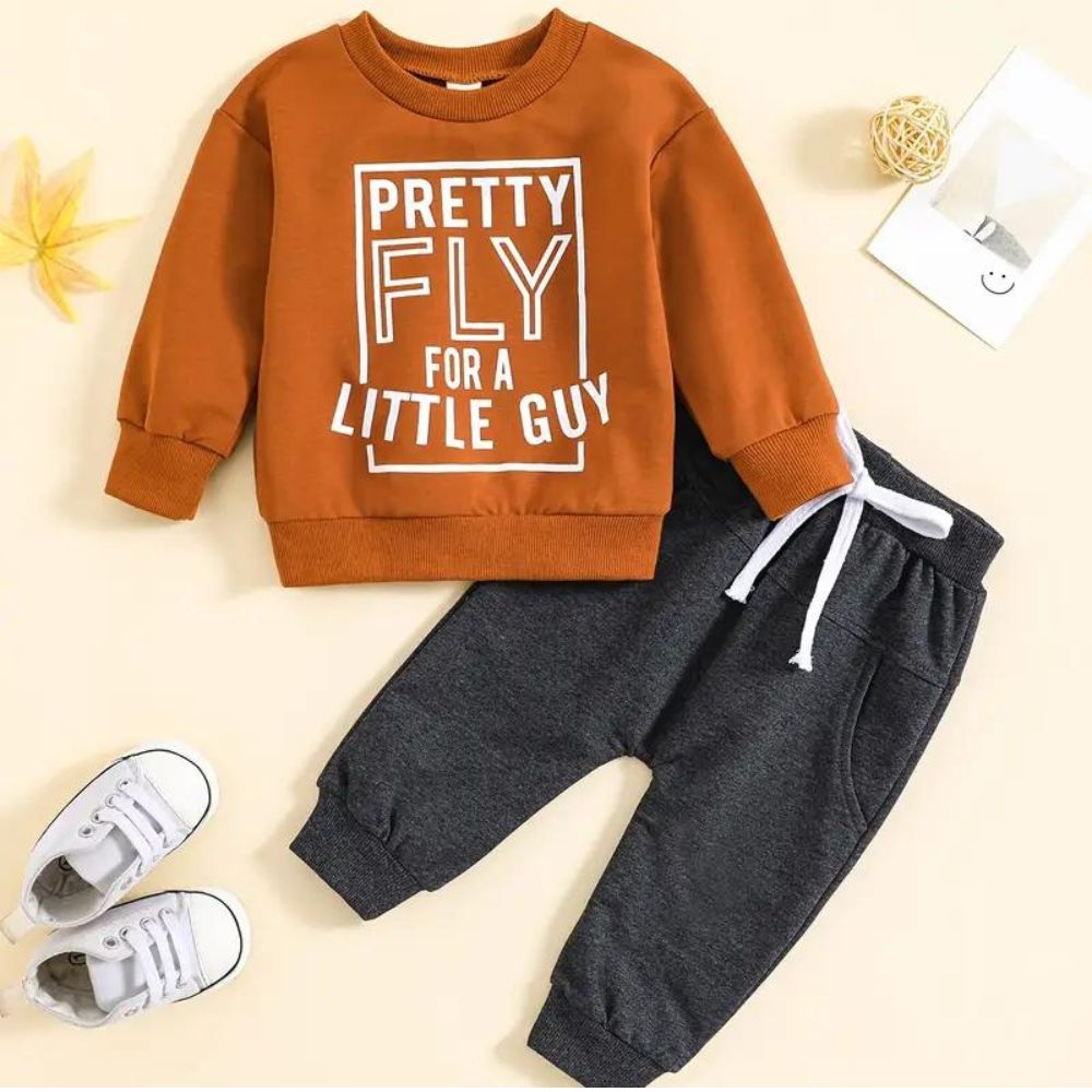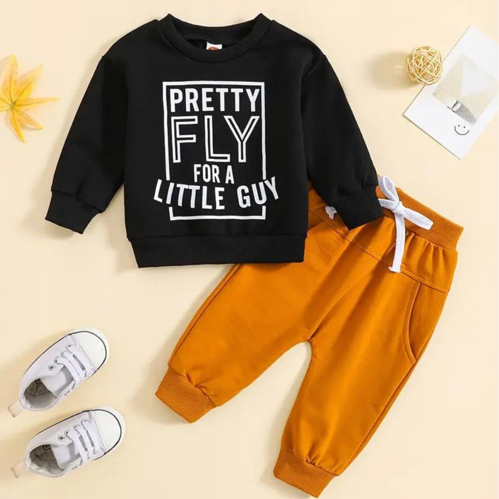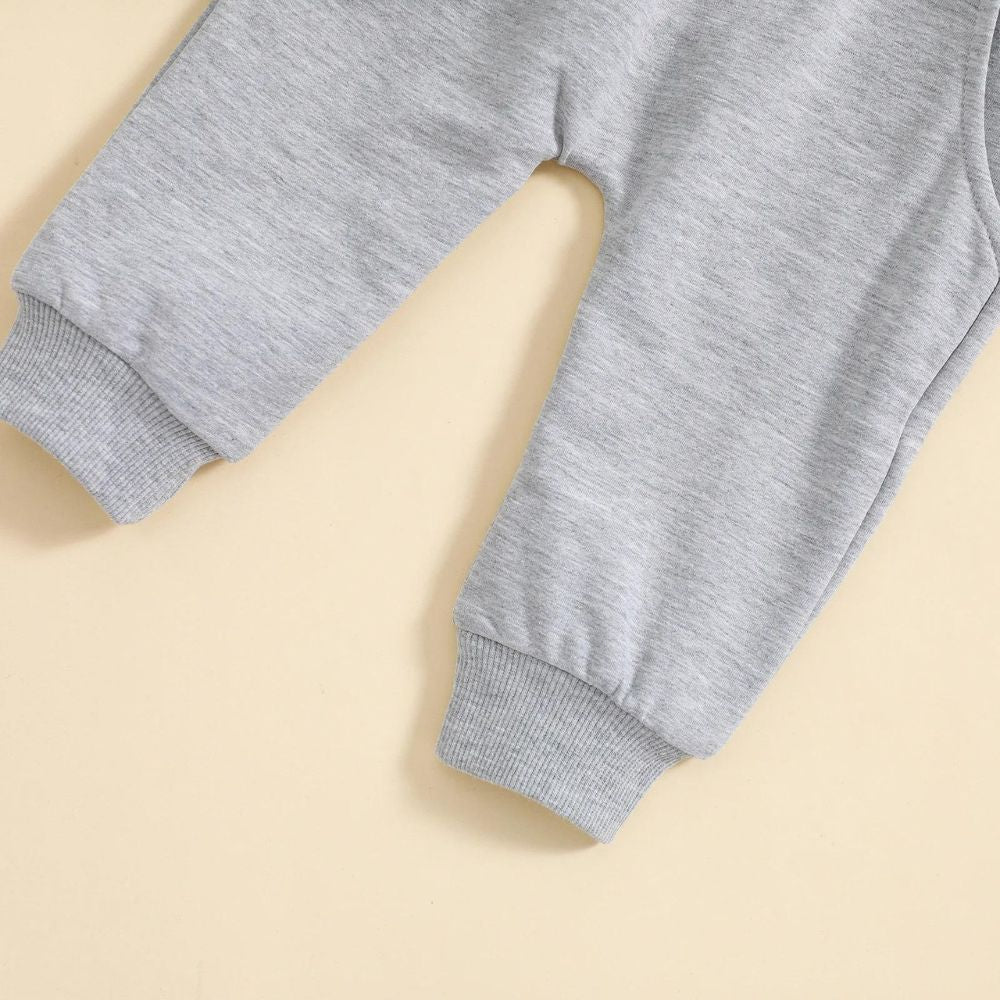 Dress your little one in style with our cozy Toddler Boy Tracksuit Set! This outfit features a long-sleeve sweatshirt top and drawstring jogger pants, perfect for fall and winter adventures. Keep your baby boy warm and trendy with this must-have ensemble.