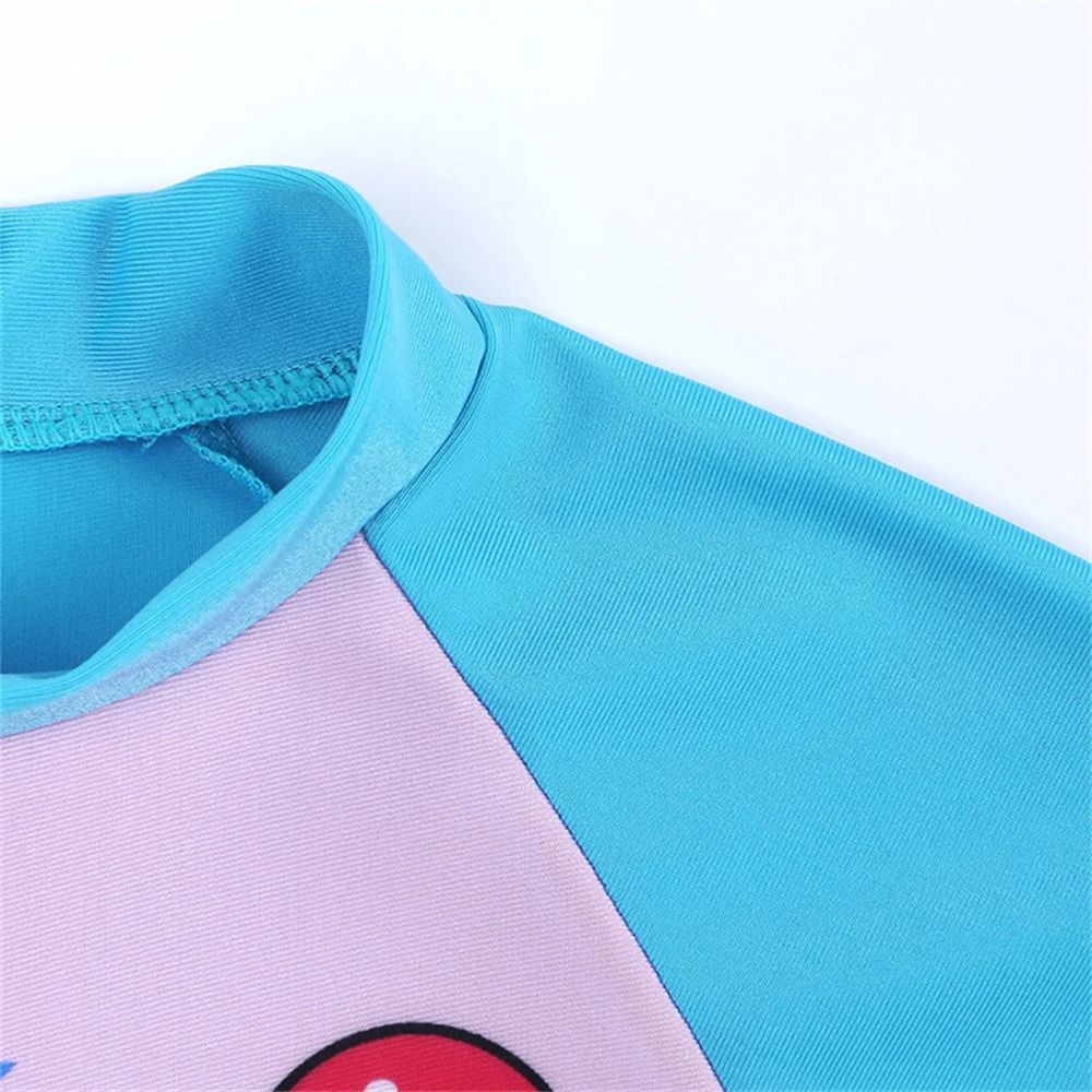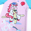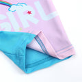 Let your little one shine at the beach or pool in this adorable “Lucky Girl” Unicorn Swimsuit Set! Designed in a sweet pink and blue colour scheme, this one-piece rash guard features a magical unicorn graphic and a matching swim cap for a complete, coordinated look.