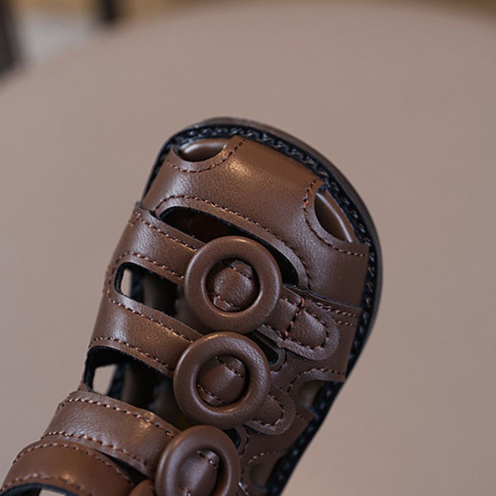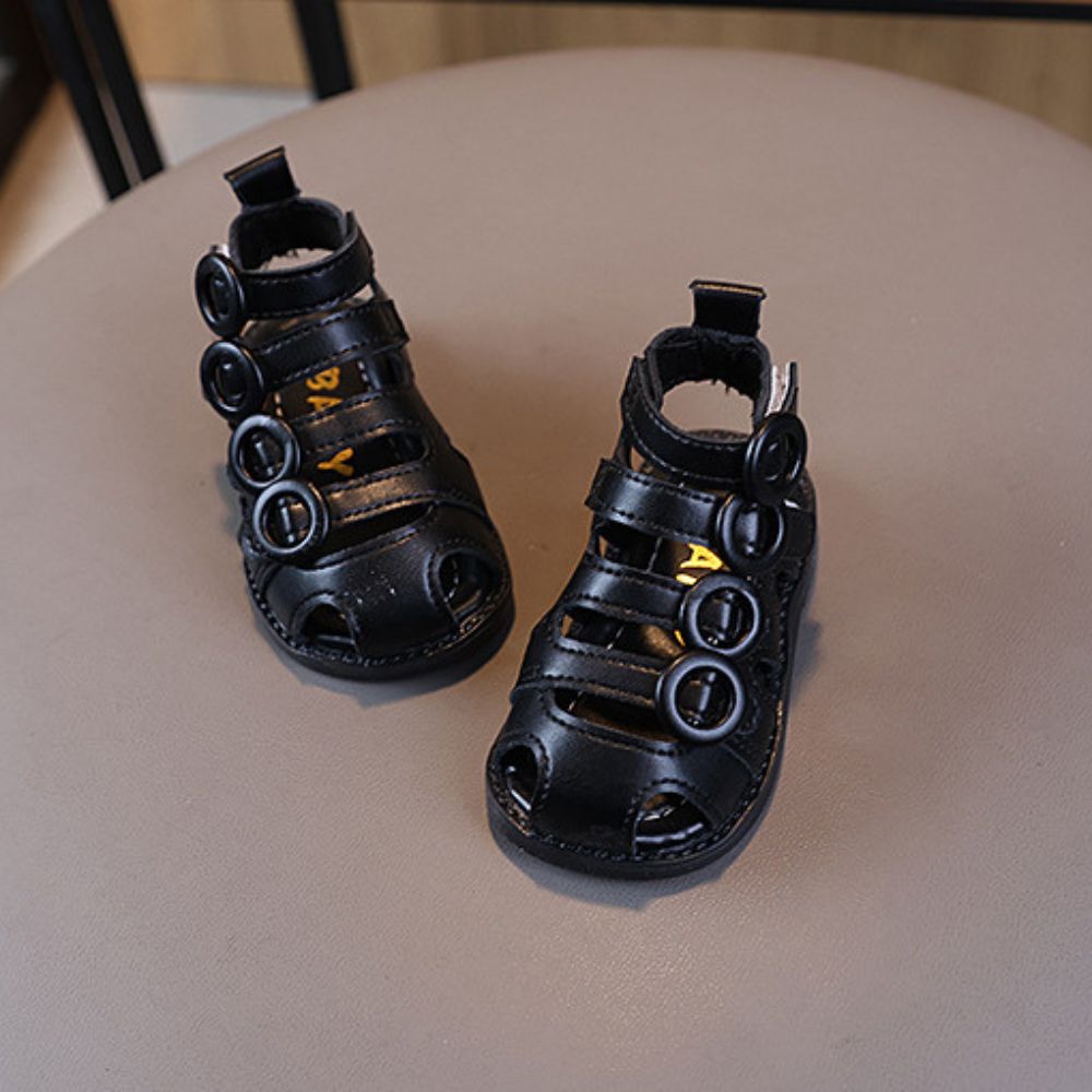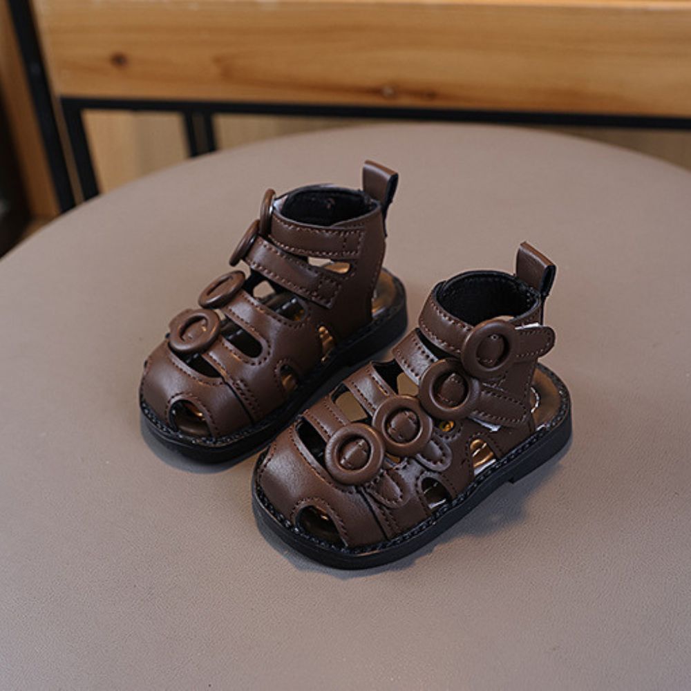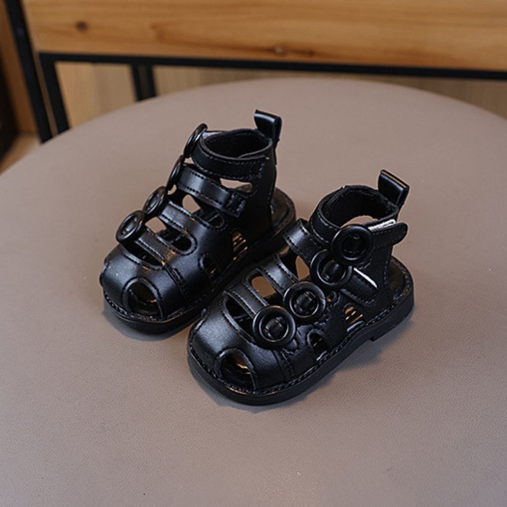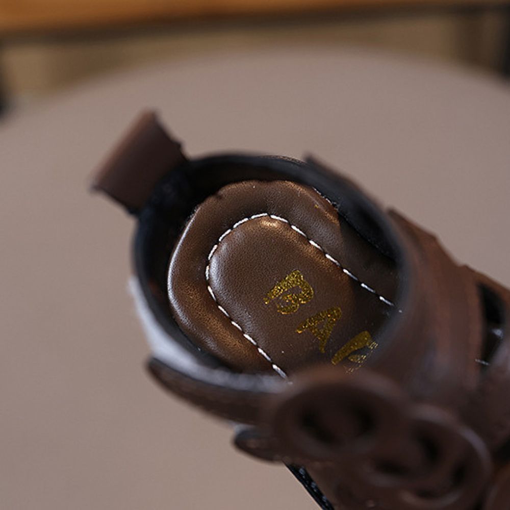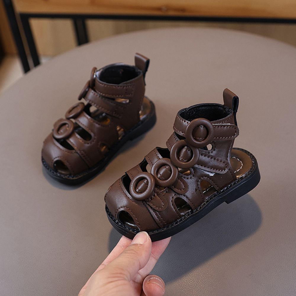 Step into timeless style with our adorable infant girls' Roman-style high-top sandals. Crafted with attention to detail, these sandals feature multiple straps and charming circular buckle-like embellishments, perfect for adding a touch of elegance to your little one's wardrobe.