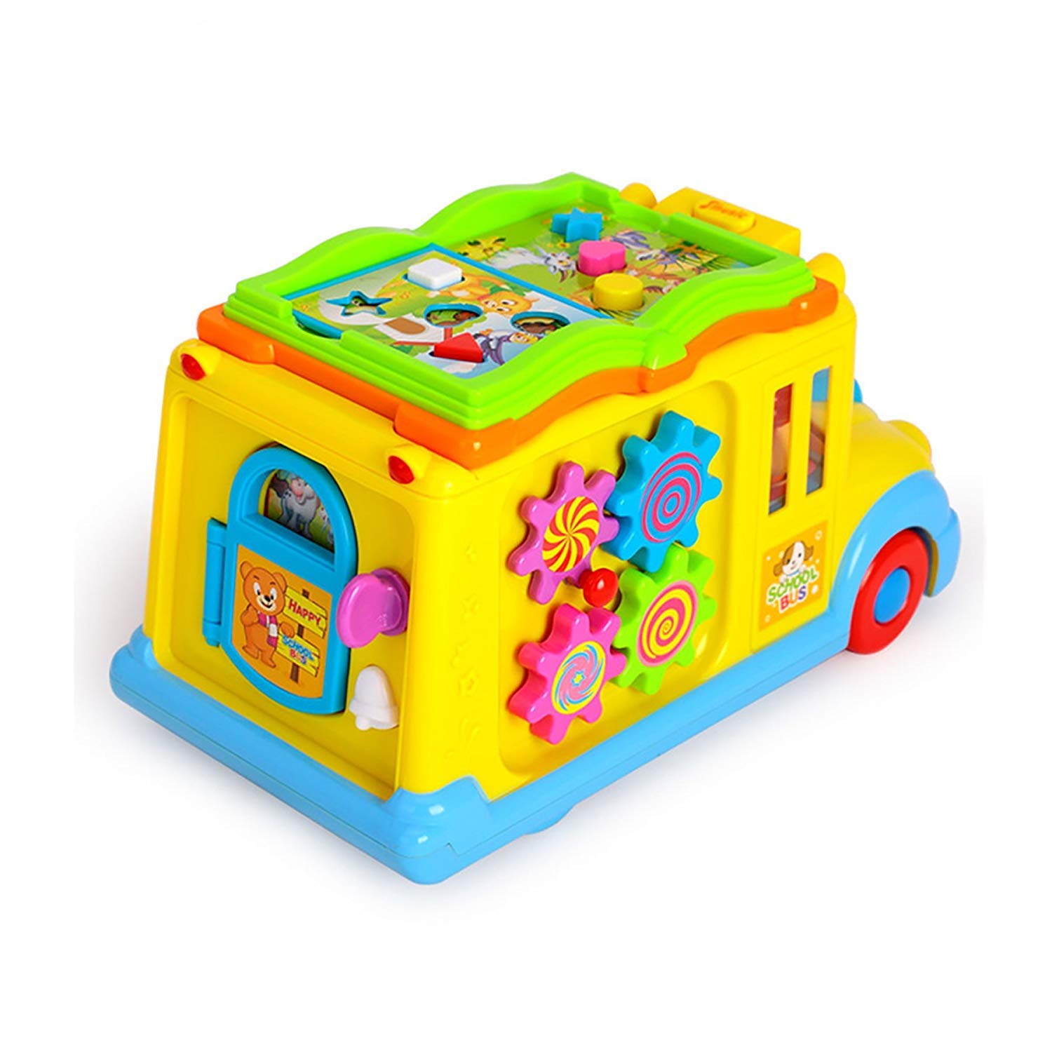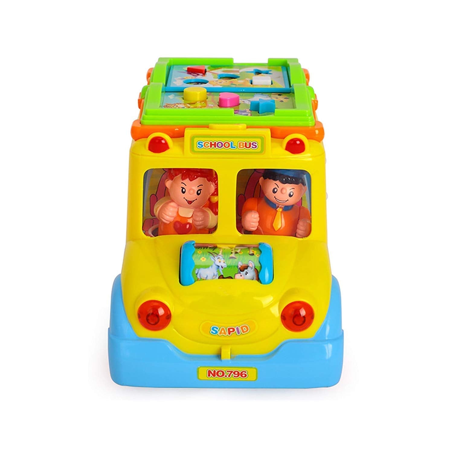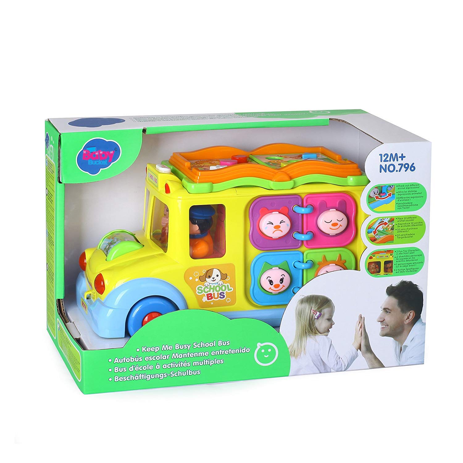Babies are crazy about the ‘Wheels on the Bus’ rhyme song - now bring the miniature school bus home with this interactive School Bus toy with light, sound and music. Interactive toys for babies engage their young minds and spark their creativity. It helps them in imagining and developing their minds. This school bus replica from the popular rhyme series repeats some lines from the rhyme along with music and lights. The ‘bump and go’ model bus turns around freely in all directions. Plug in 3 AA batteries for unlimited fun with your baby and this exciting school bus toy with music and sound show!