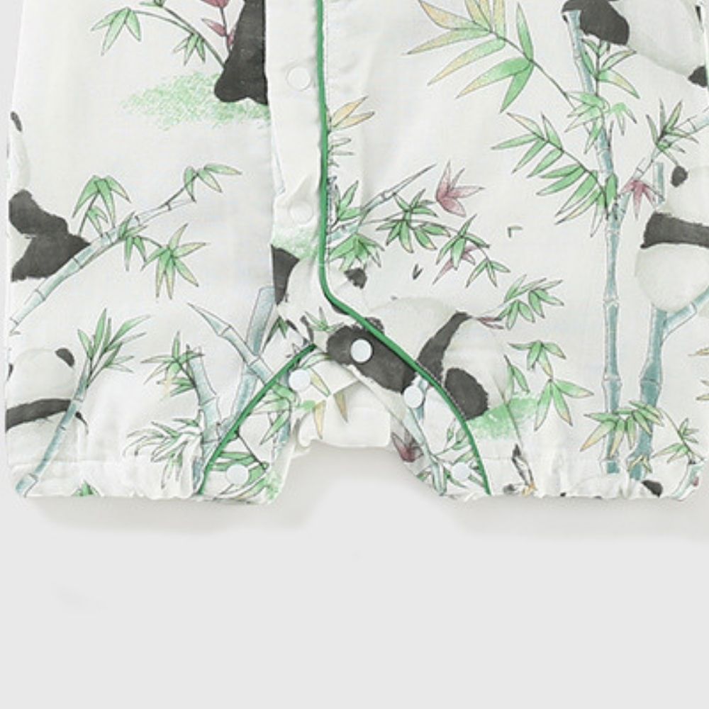 Dress your little one in style with our charming Panda and Bamboo Print Half Romper! This romper combines comfort and cuteness in one delightful outfit, perfect for warm days at the park, family outings, or playdates.