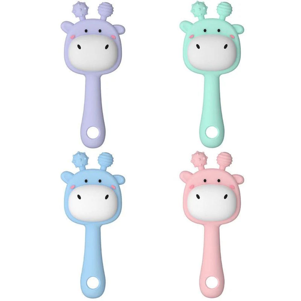 - Engaging Design: Adorable giraffe shape in vibrant colours—purple, mint green, light blue, and pink—that stimulate sight and touch.