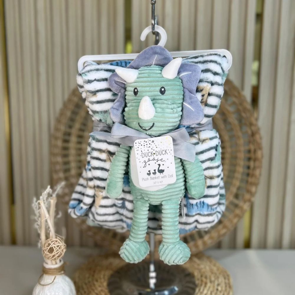 Snuggle up with this adorable and cosy plush blanket and soft toy set! Perfect for nap time, travel, or cuddling at home, this set includes a silky, lightweight blanket and a cute plush dinosaur toy that your little one will love.