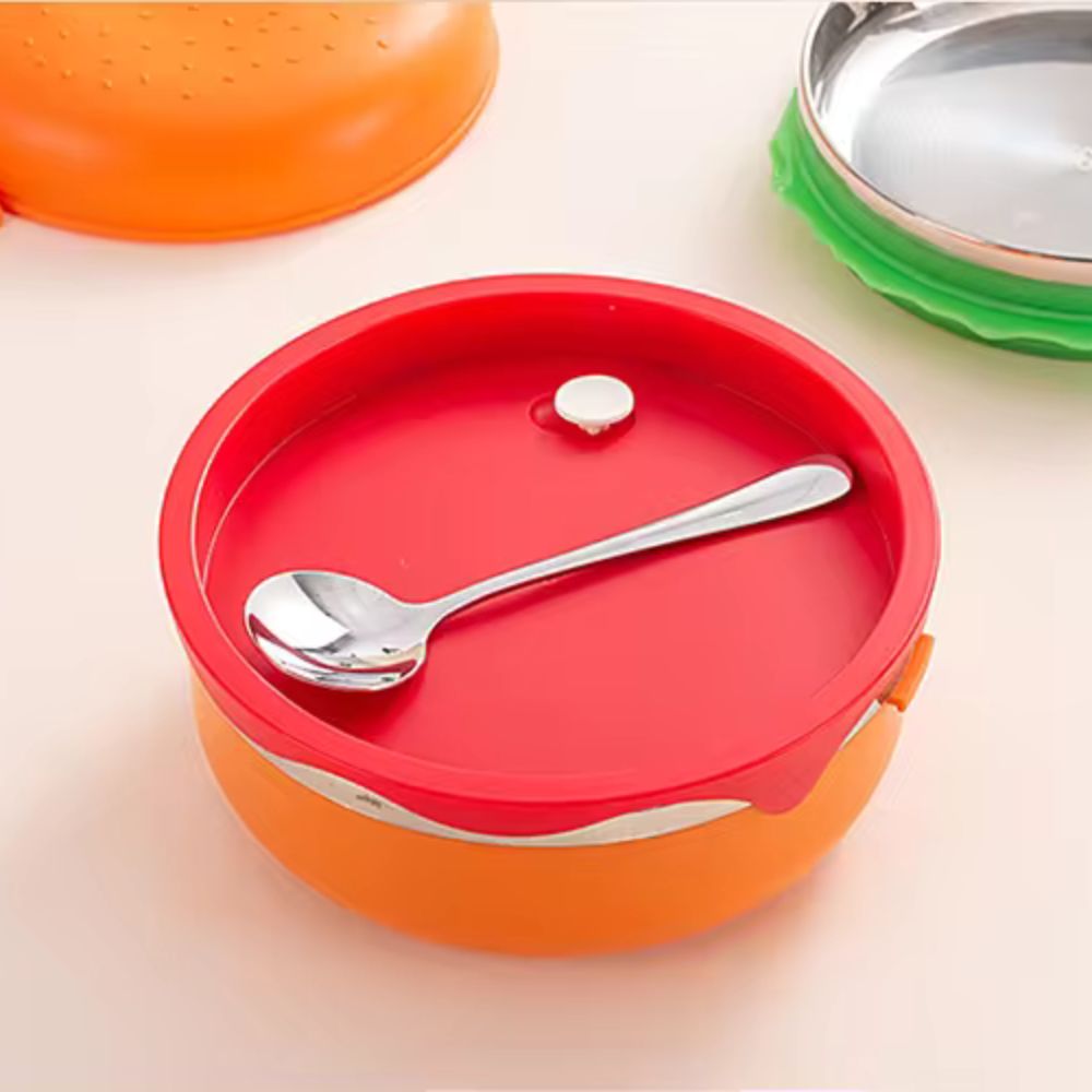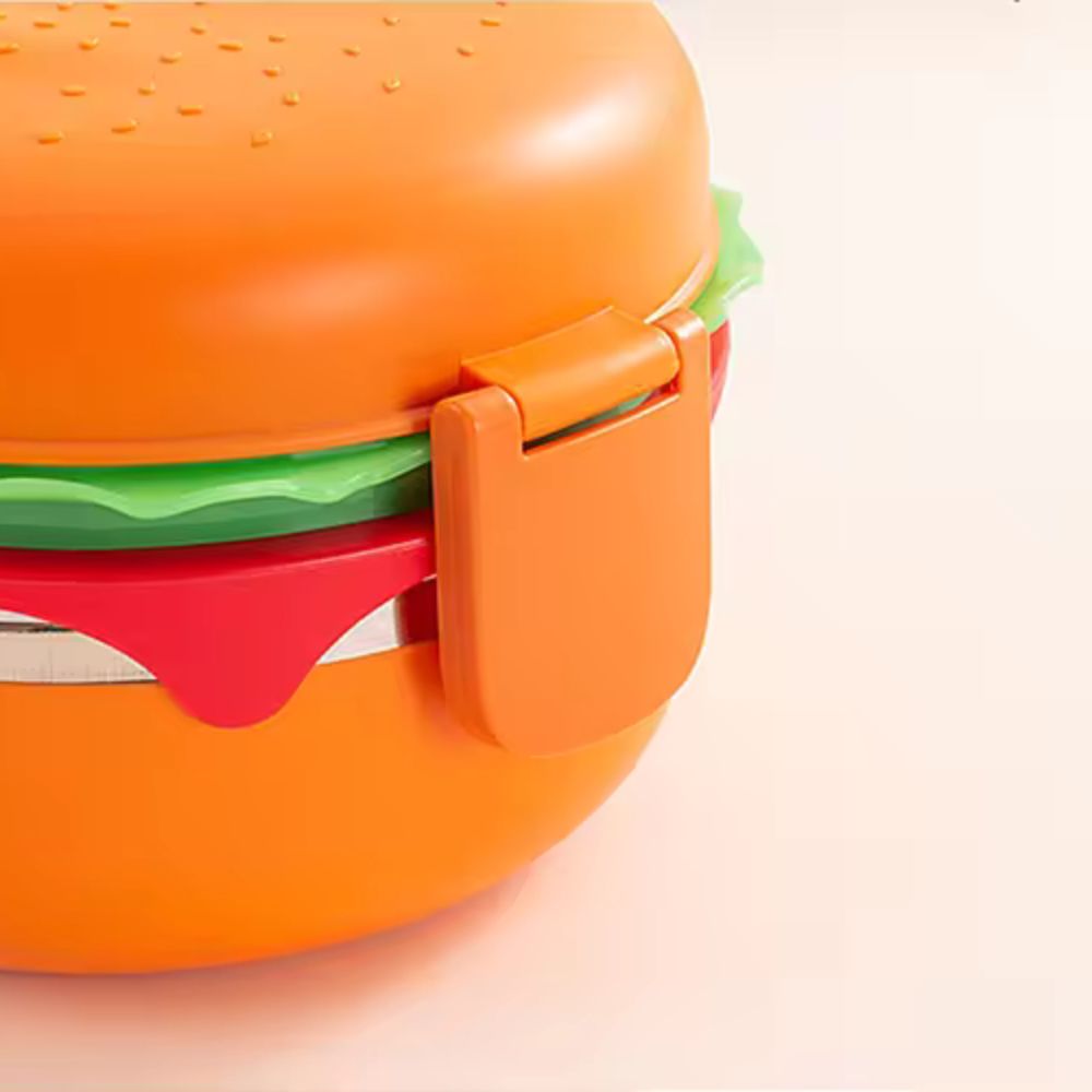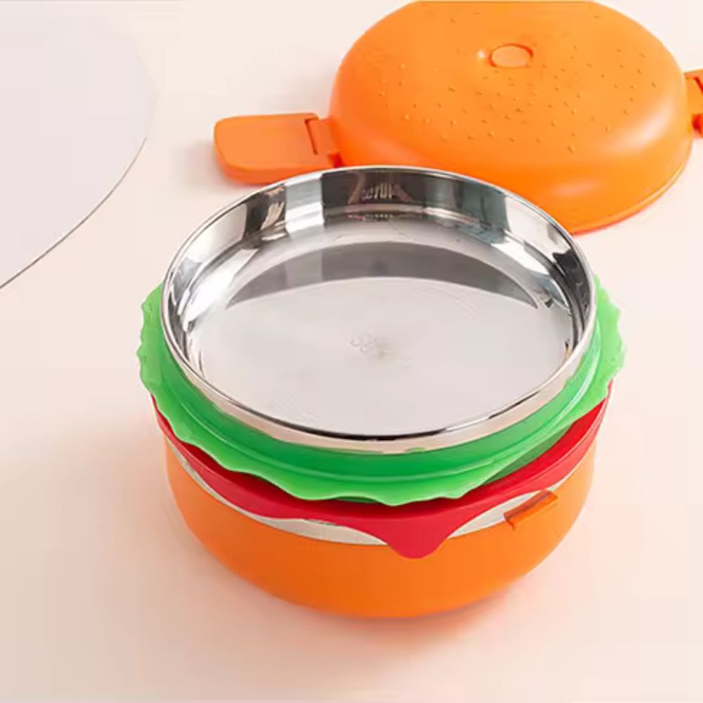 Stainless Steel Double Layered Burger Shaped Lunch Box For Kids