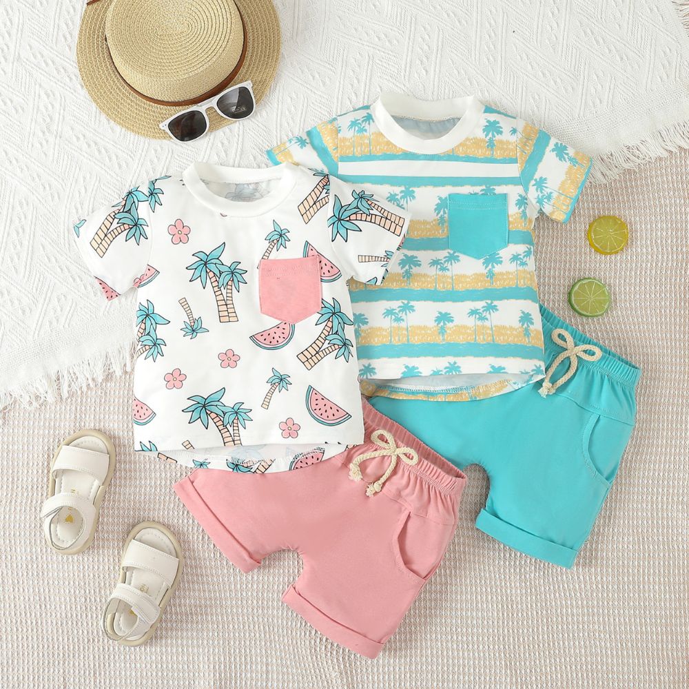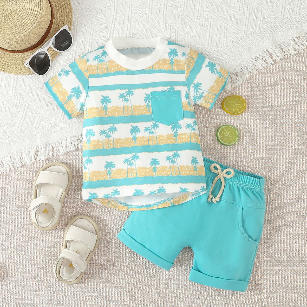 Trees Printed Stylish Tees And Shorts Set Monsoon Wear For Kids